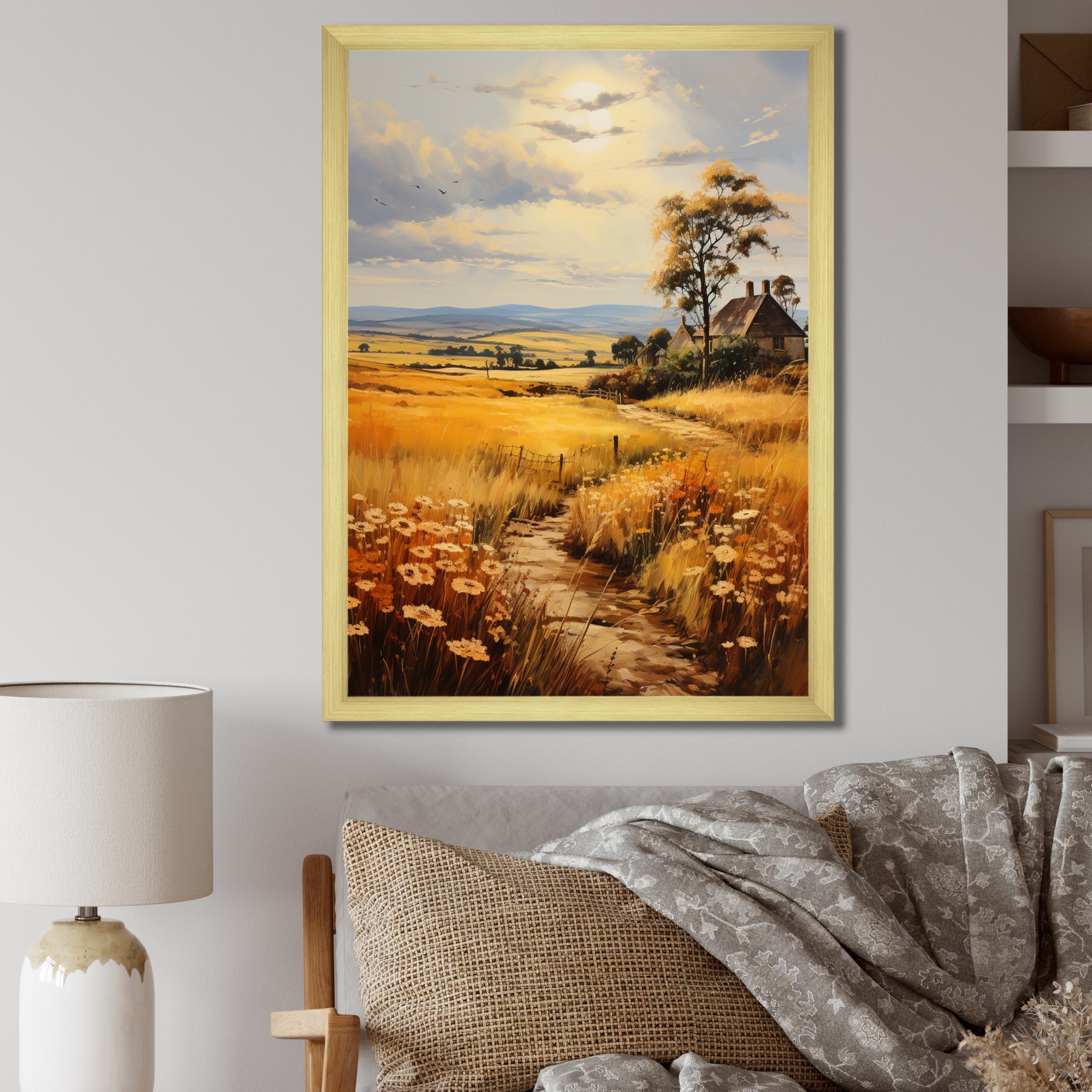 Designart "England Golden Fieldsengland Landscape" England Framed Wall Art Living Room