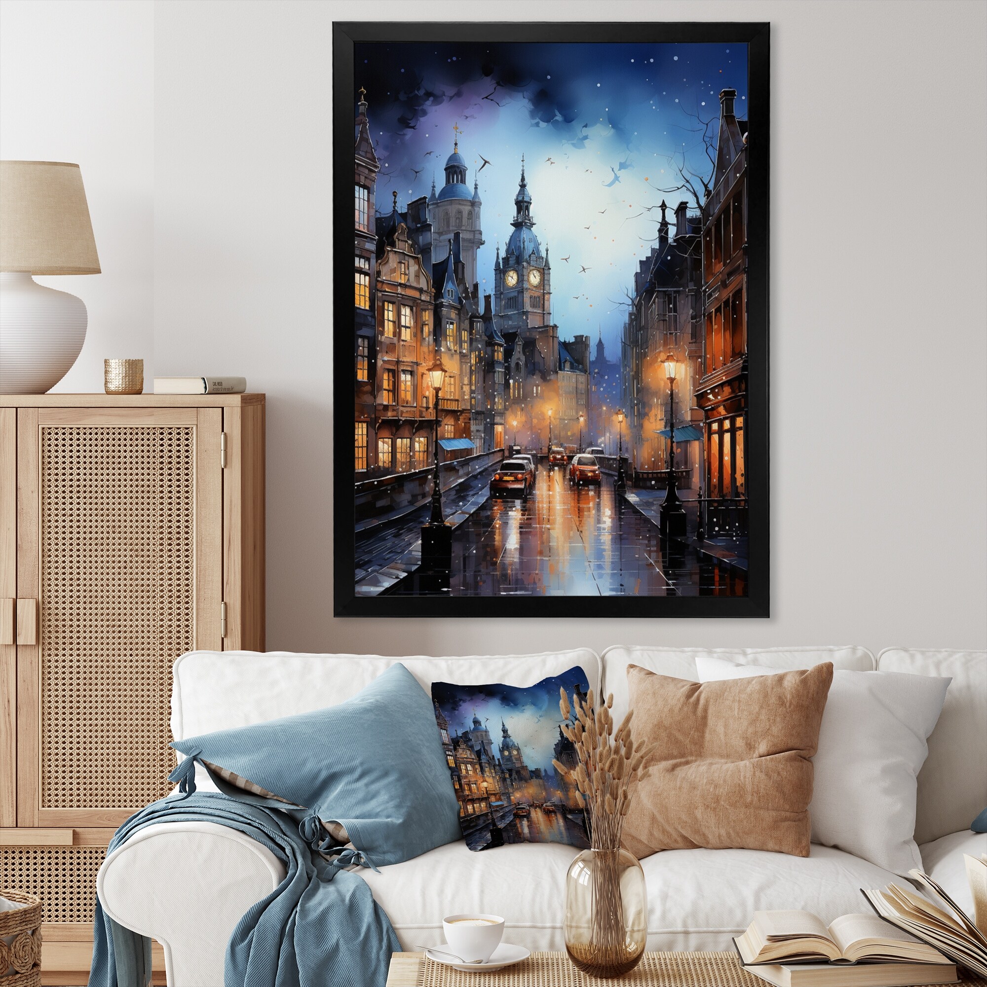 Designart "England City Skylineengland Landscape II" England Framed Wall Art Prints