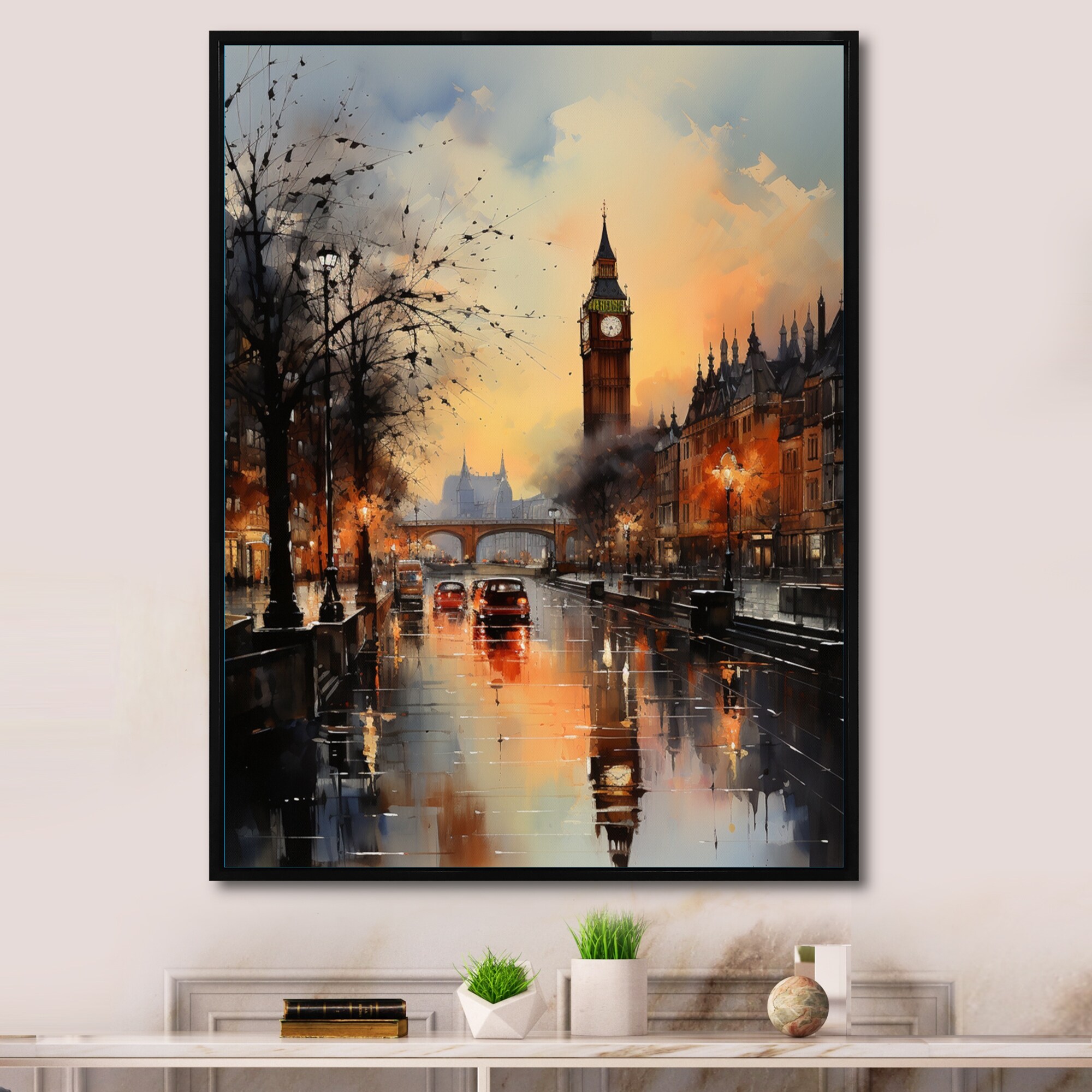 Designart "England City Skylineengland Landscape III" England Framed Canvas Art Print