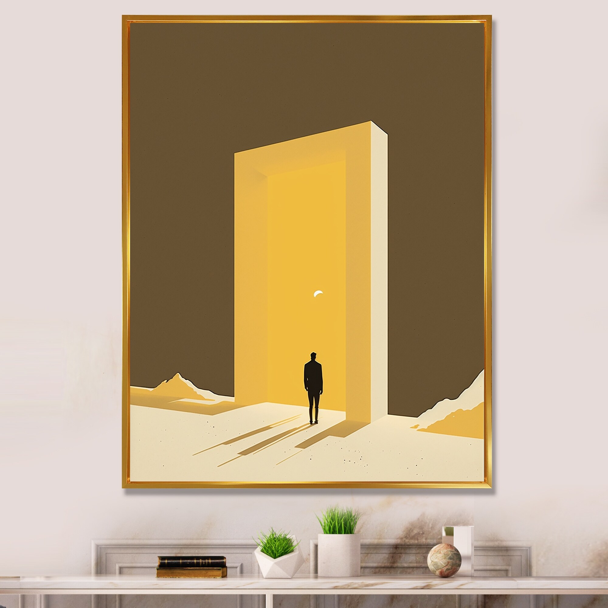 Designart "Reality Of Essential Shapes IX" Minimalism Framed Canvas Wall Art Print