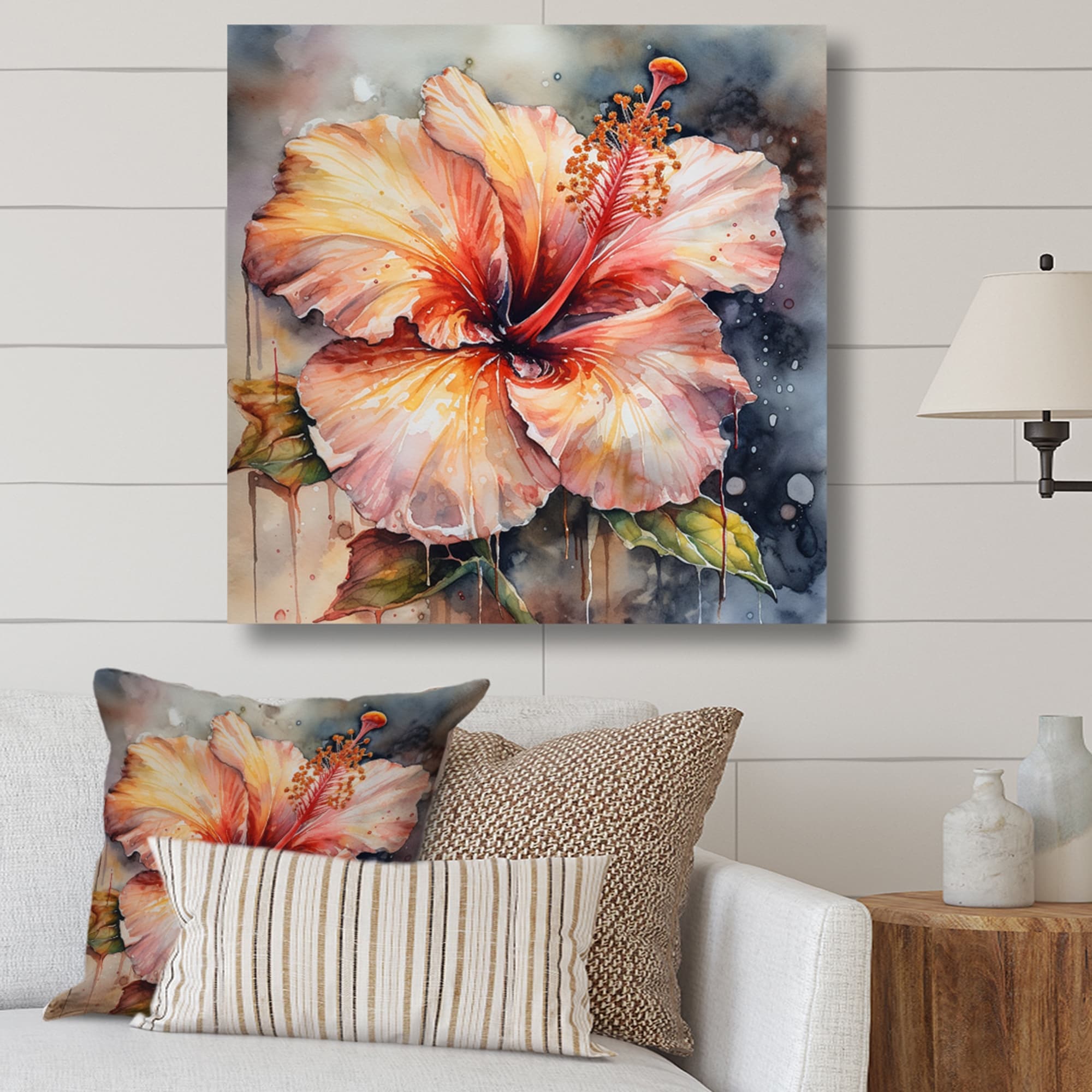 Designart "Orange Grey Hibiscus Euphoria I" Floral Hibiscus Wall Art Prints