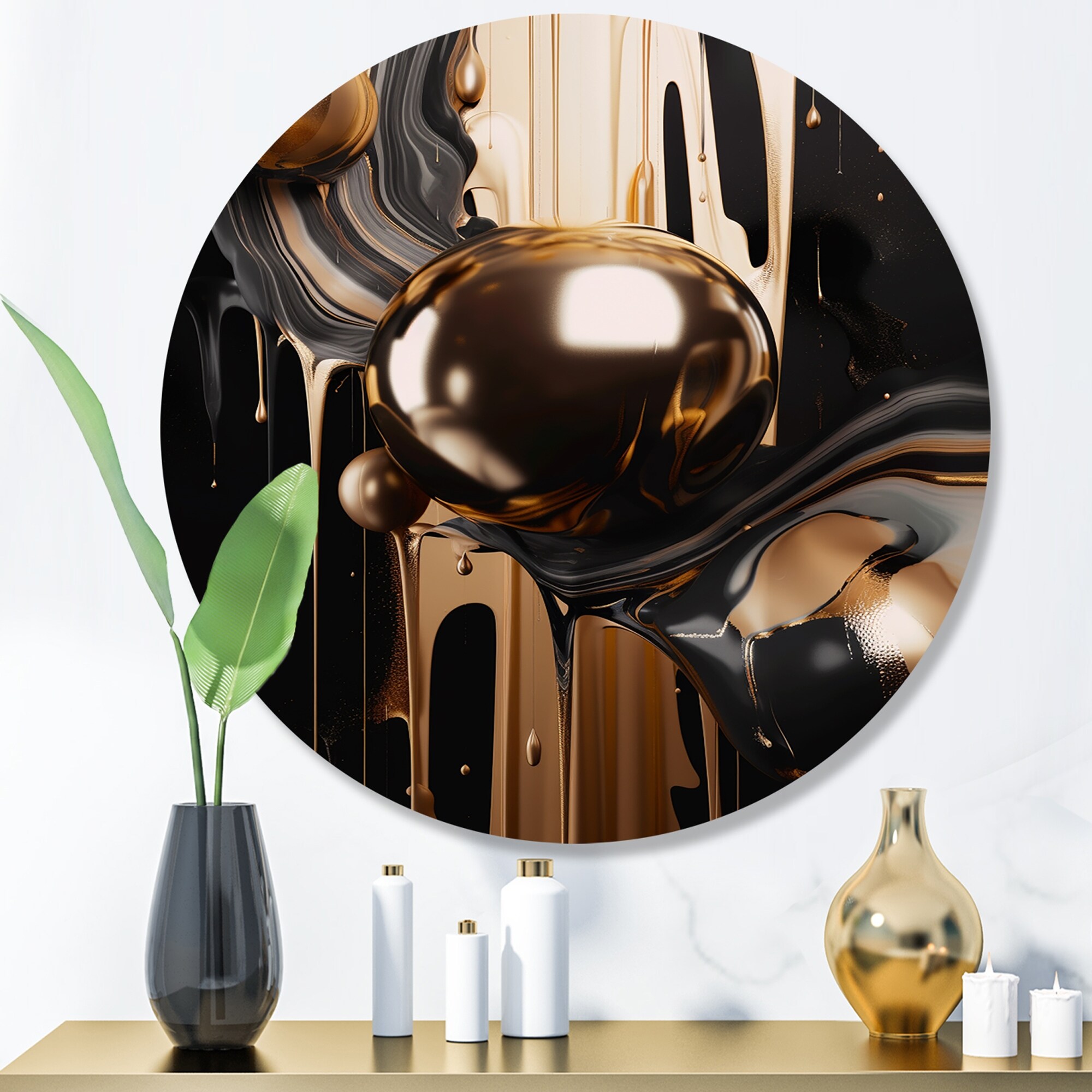 Designart "Gold And Black Marbled Euphoria IV" Abstract Marble Metal Round Wall Art