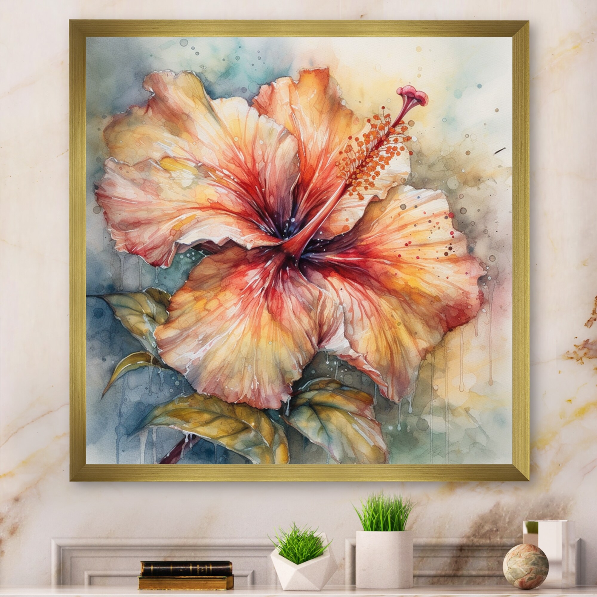 Designart "Orange Grey Hibiscus Euphoria I" Floral Hibiscus Framed Canvas Print