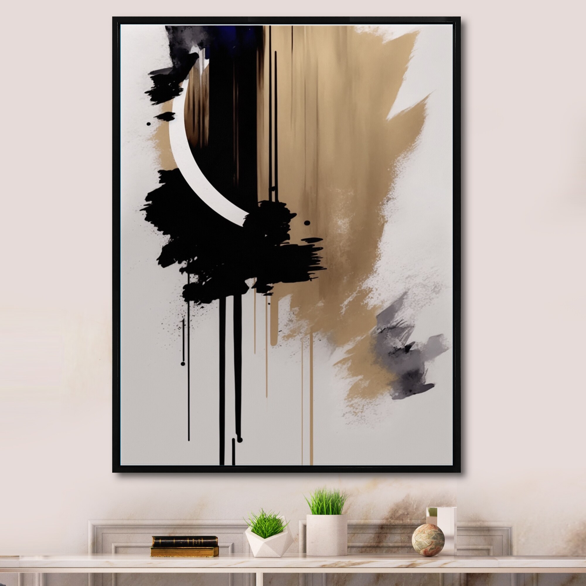 Designart "Black, White And Gold Expression II" Modern Framed Canvas Art Print