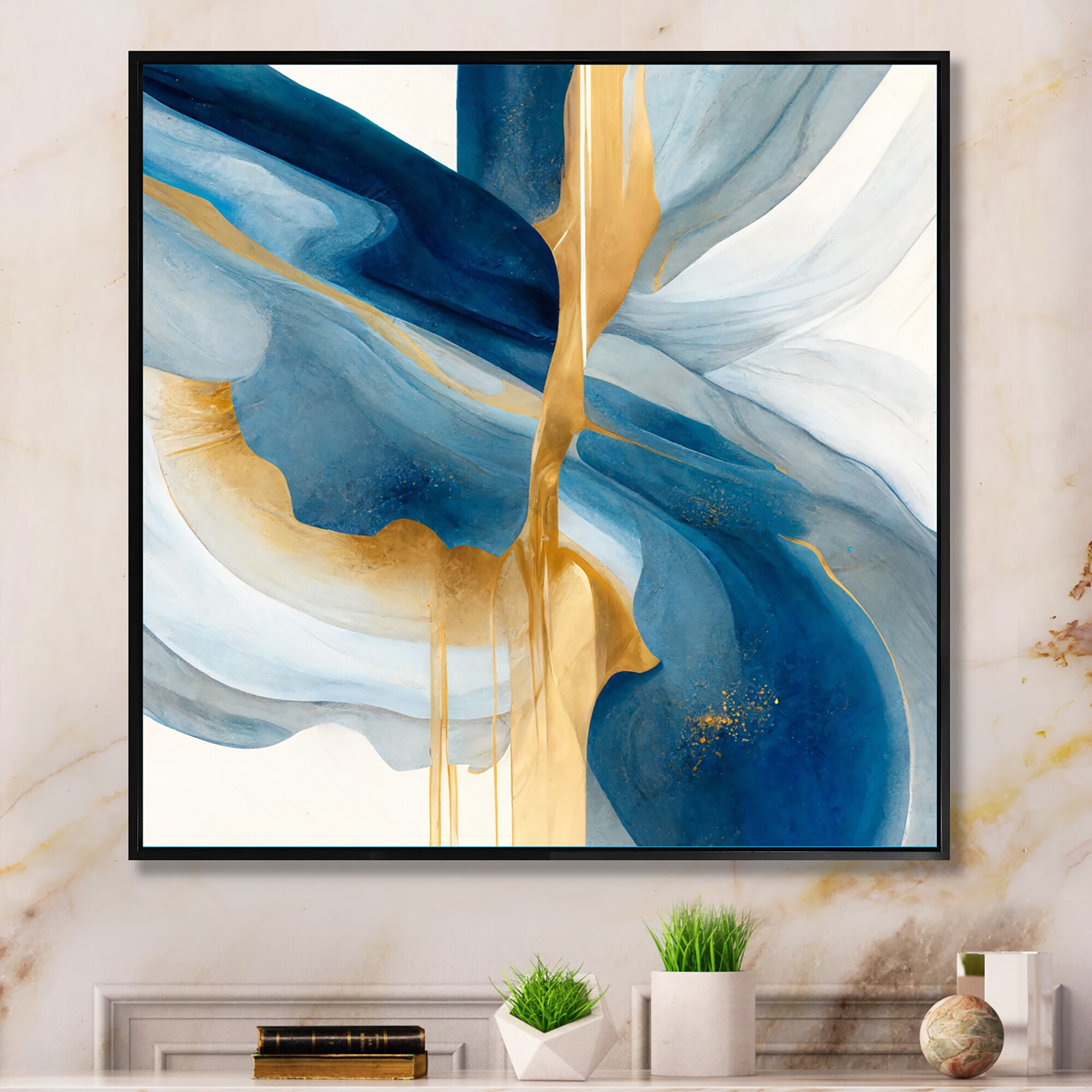 Designart "Gold And Green Marble Expression" Abstract Marble Framed Wall Decor