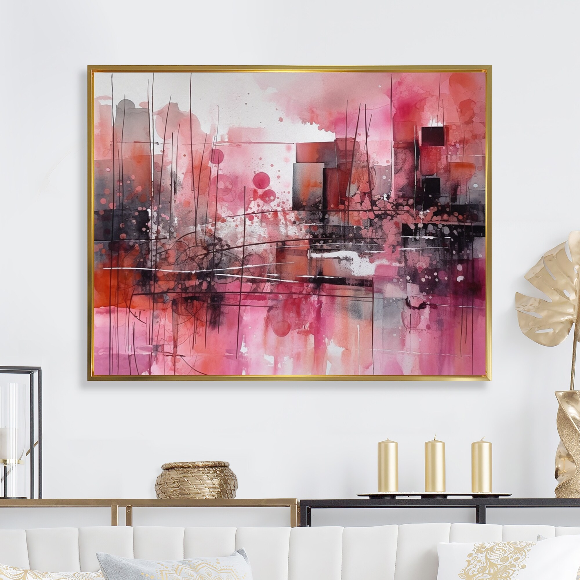 Designart "Glam Gold And Black Expression I" Modern Framed Canvas Art Print