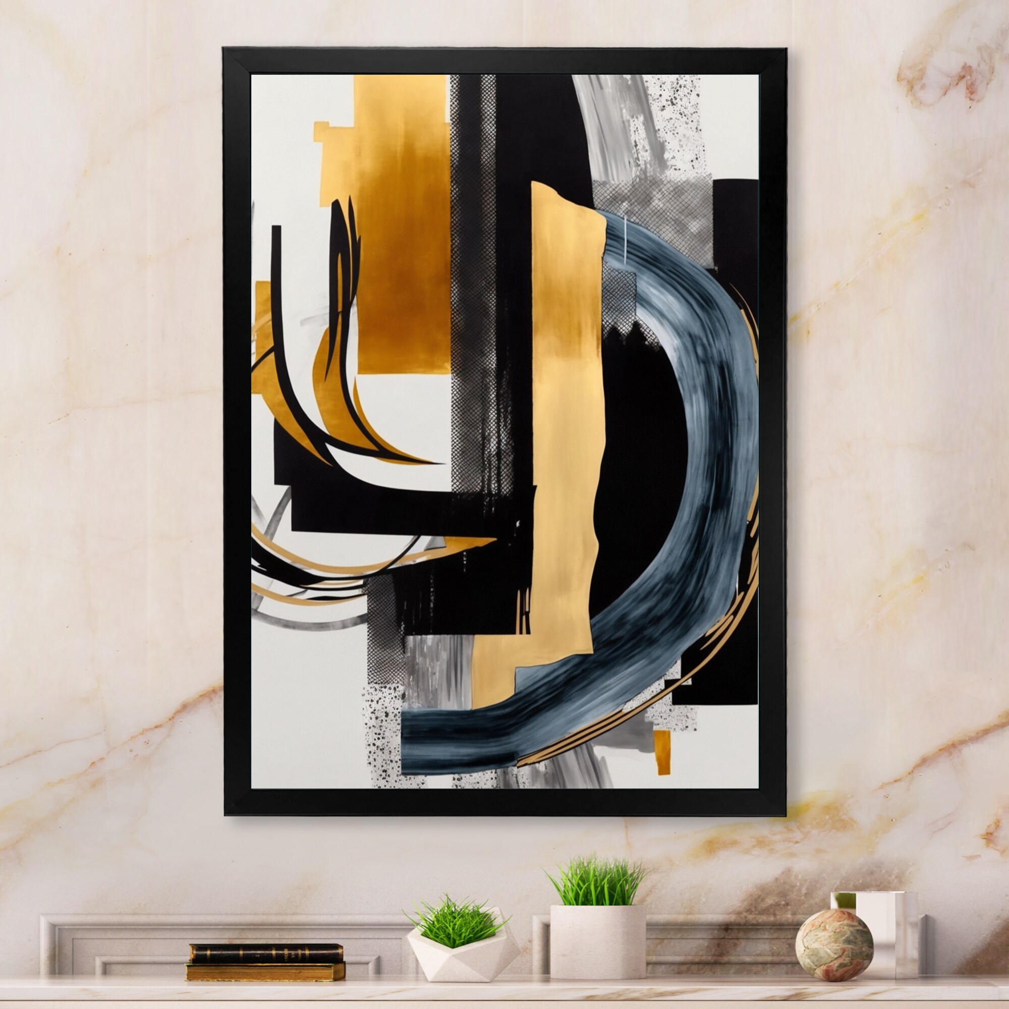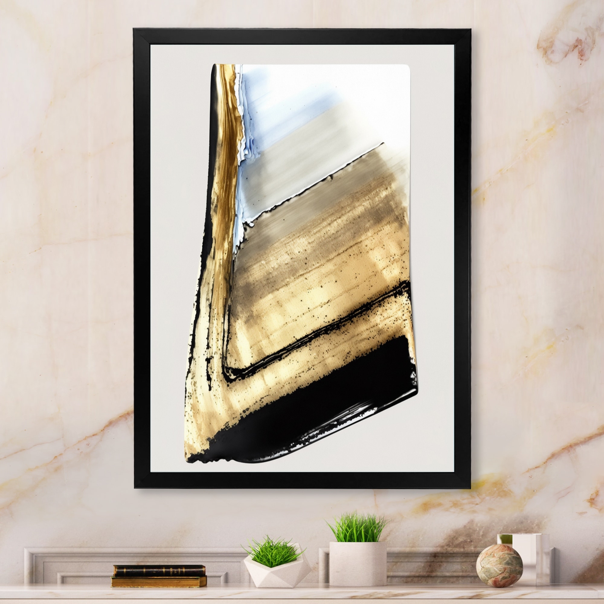 Designart "Glam Gold And Black Expression IV" Modern Framed Art Print