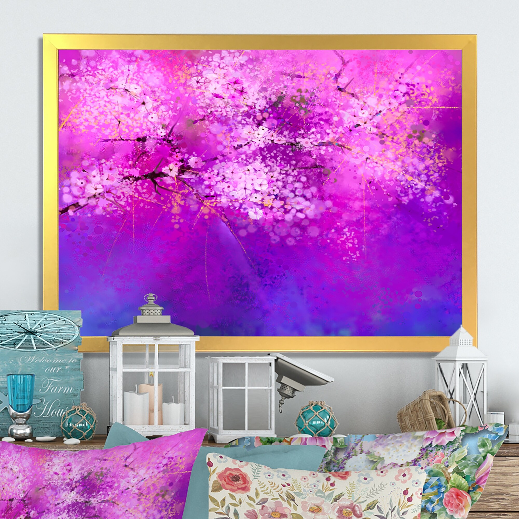 Designart "Pink And Purple Cherry Blossoms Expression" Traditional Framed Art Print