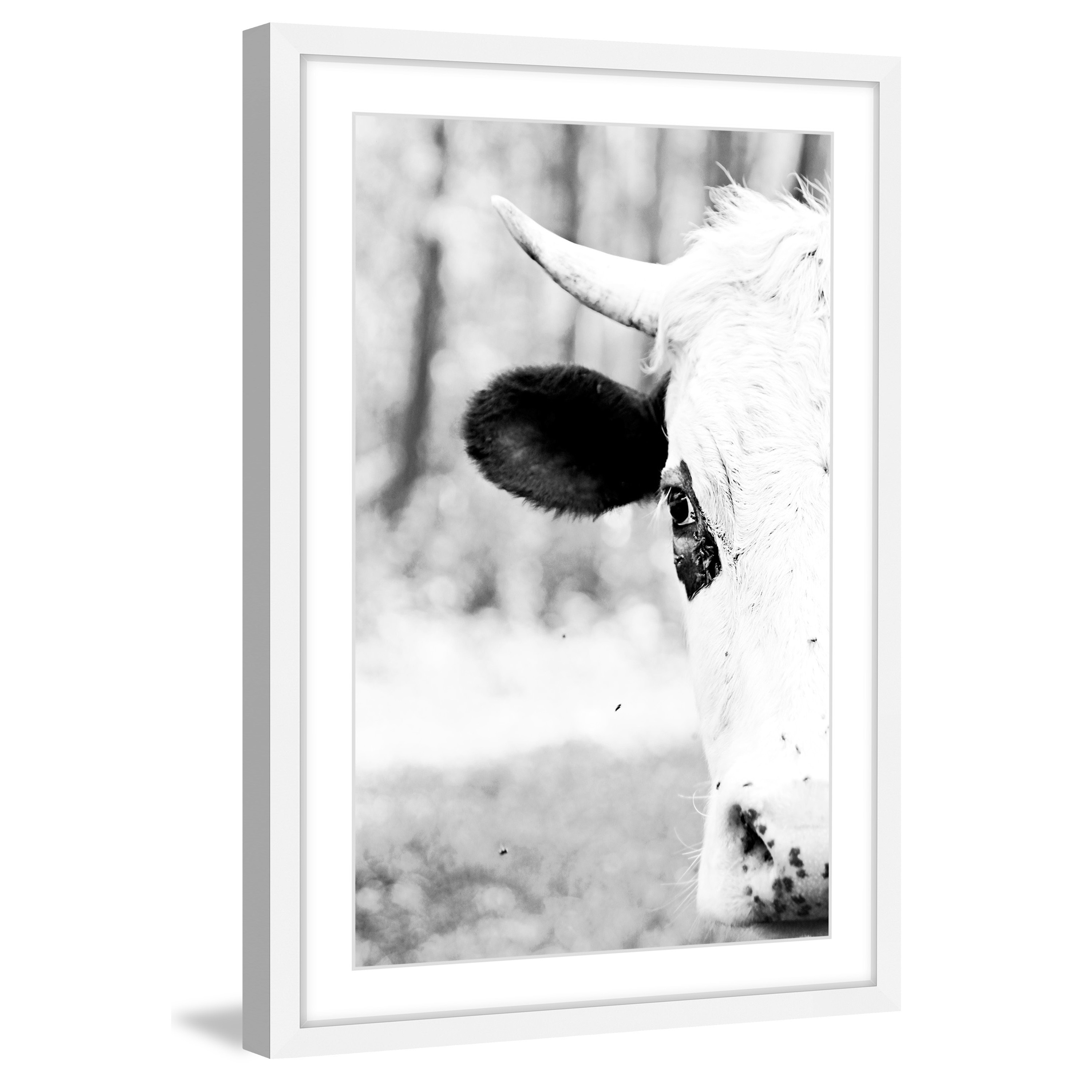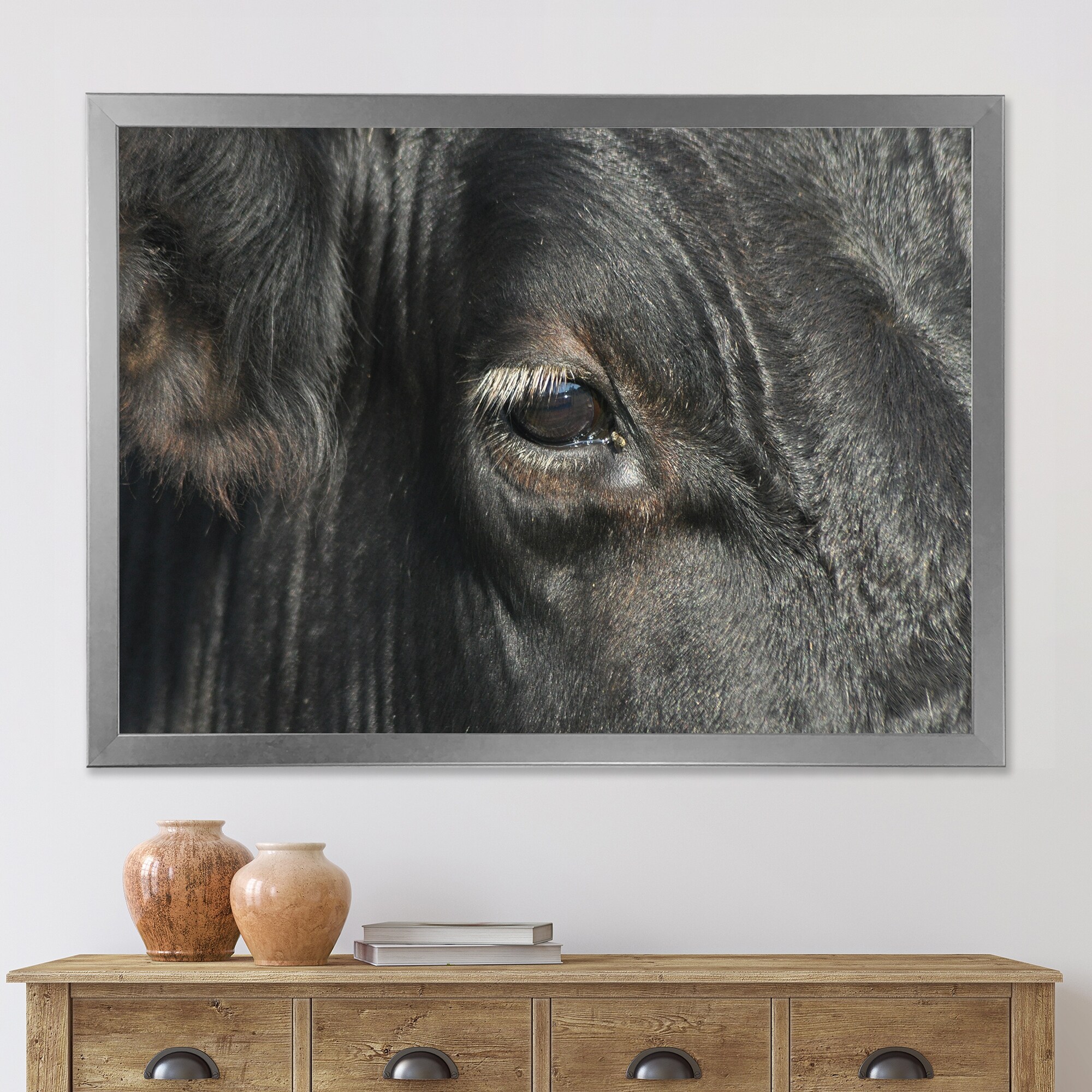 Designart "Cow Grazing in the Meadow Close-Up of Eye" Farmhouse Framed Art Print
