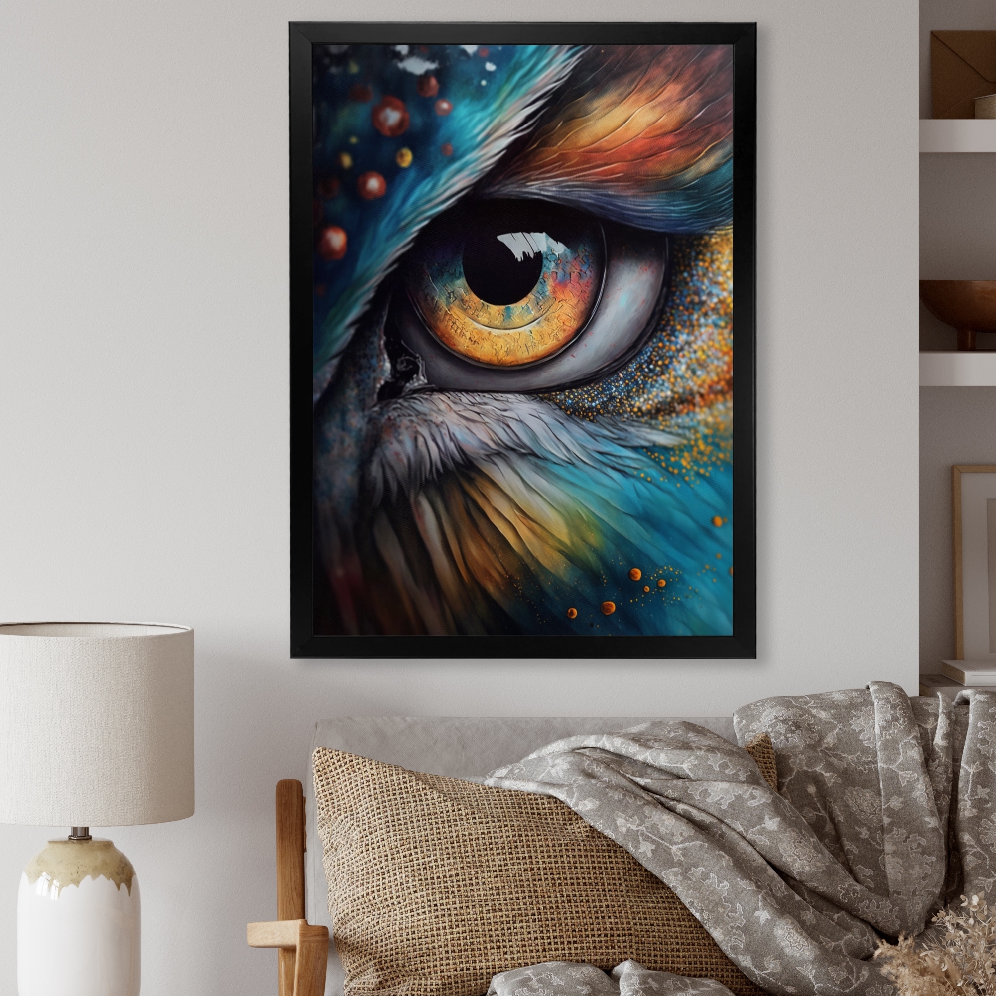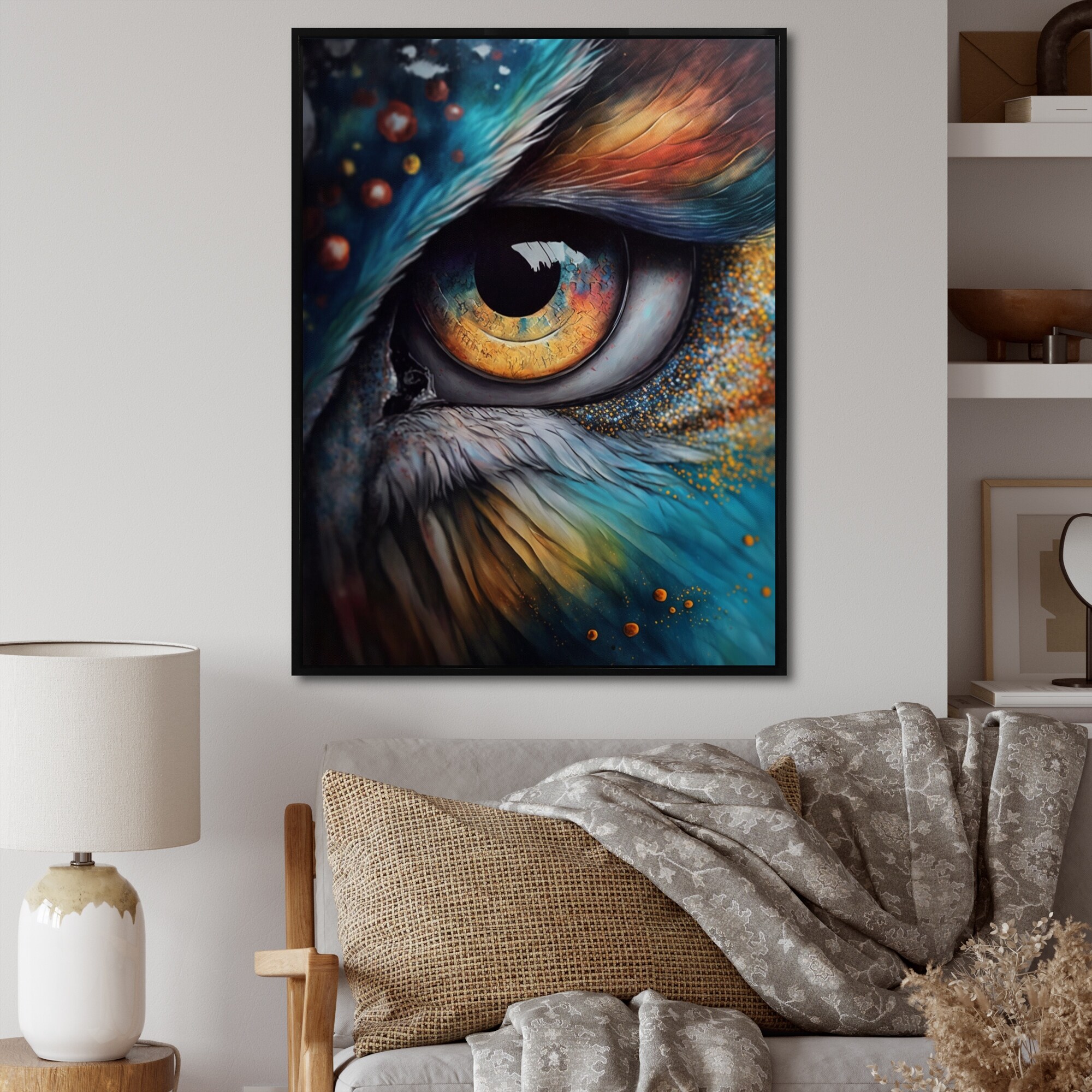 Designart "Blue Spirital Owl Eye" Animals Owl Framed Wall Art Prints