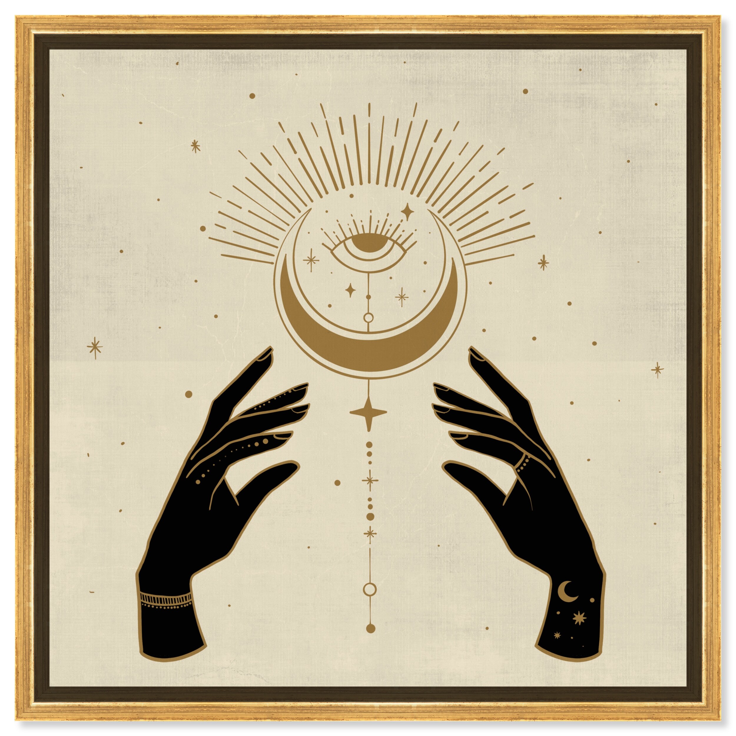 Celestial Hands 2, Minimal Mystical Eye Modern Gold Canvas Wall Art Print for Bedroom