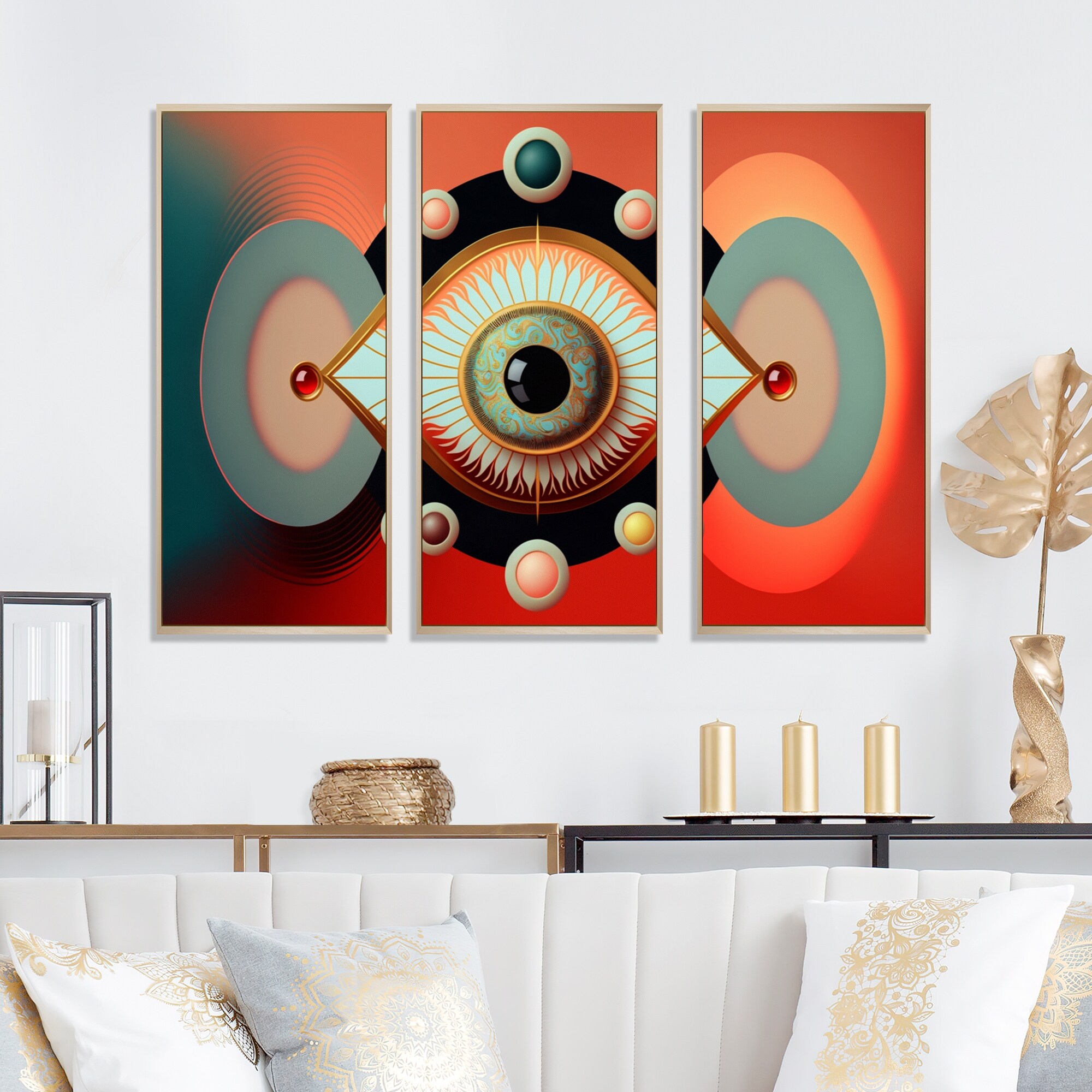 Designart "Golden Eye of the Beholder VII" Modern Abstract Framed Canvas Wall Art Print - 3 Panels