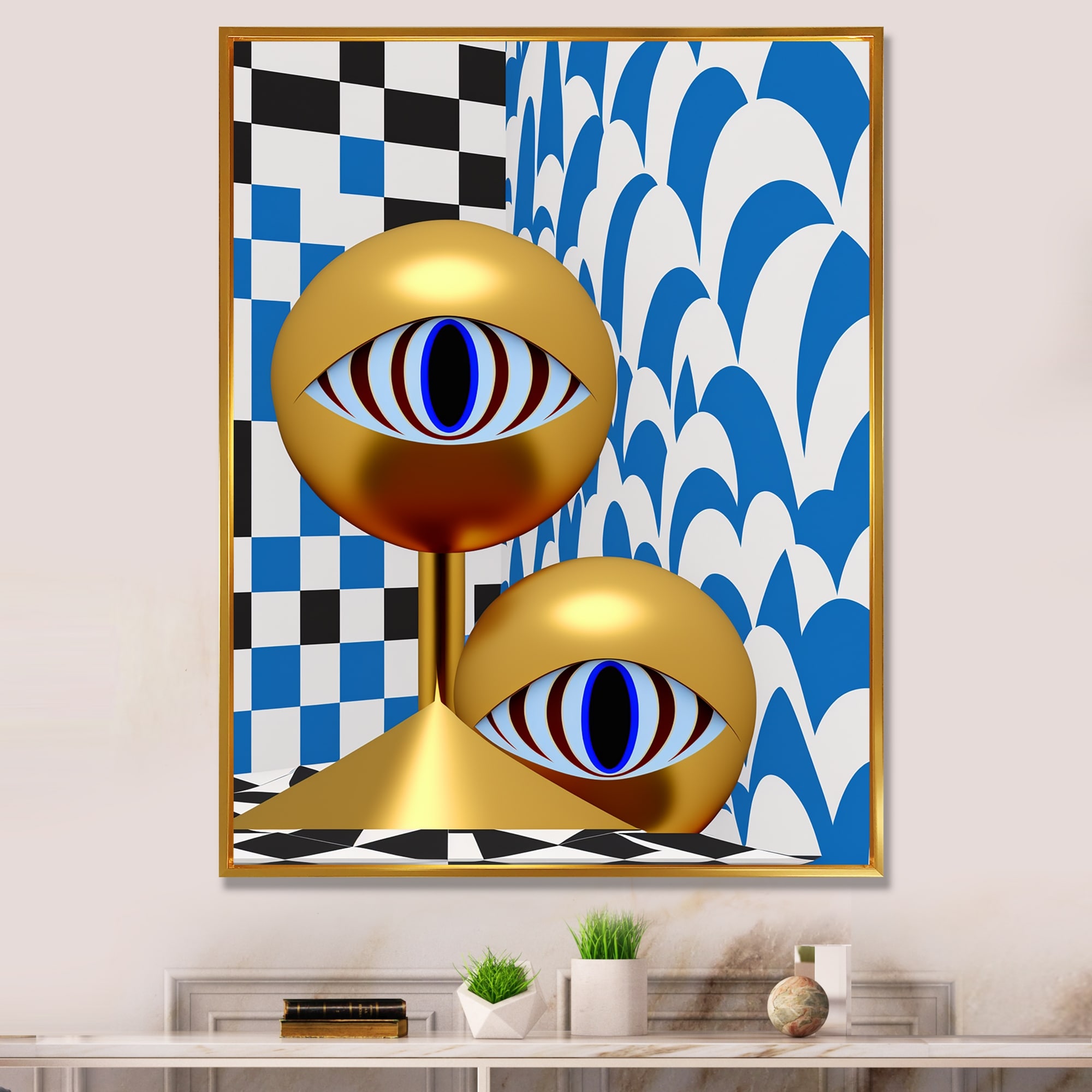 Designart "Surrealist Golden Eye Landscape" Modern Abstract Framed Canvas Wall Art Print