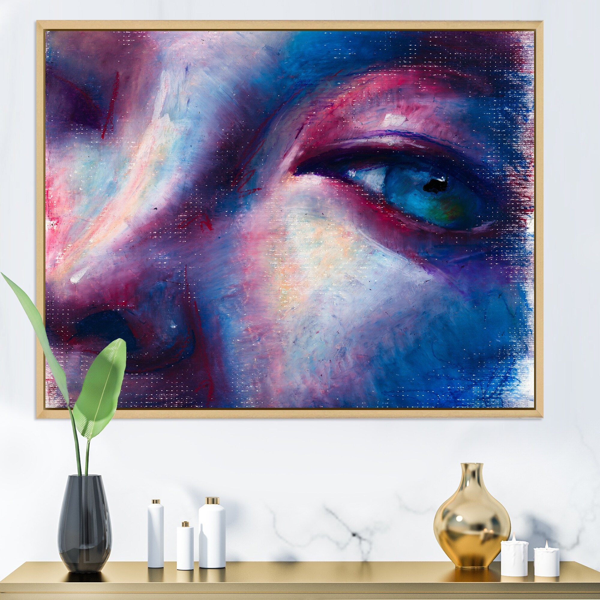 Designart "Colorful Turquoise Woman Eye Art" Abstract Framed Canvas artwork