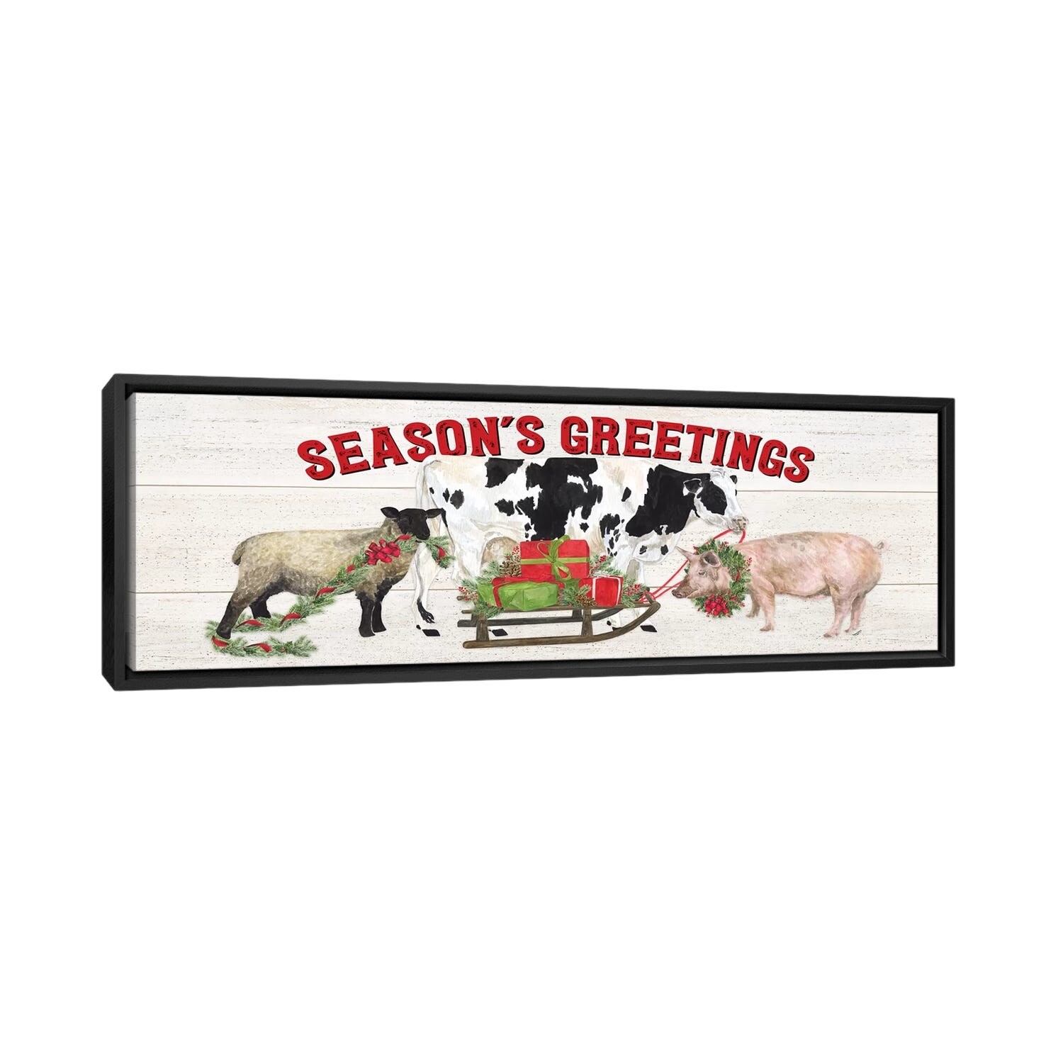 iCanvas "Christmas On the Farm - Seasons Greetings" by Tara Reed Framed