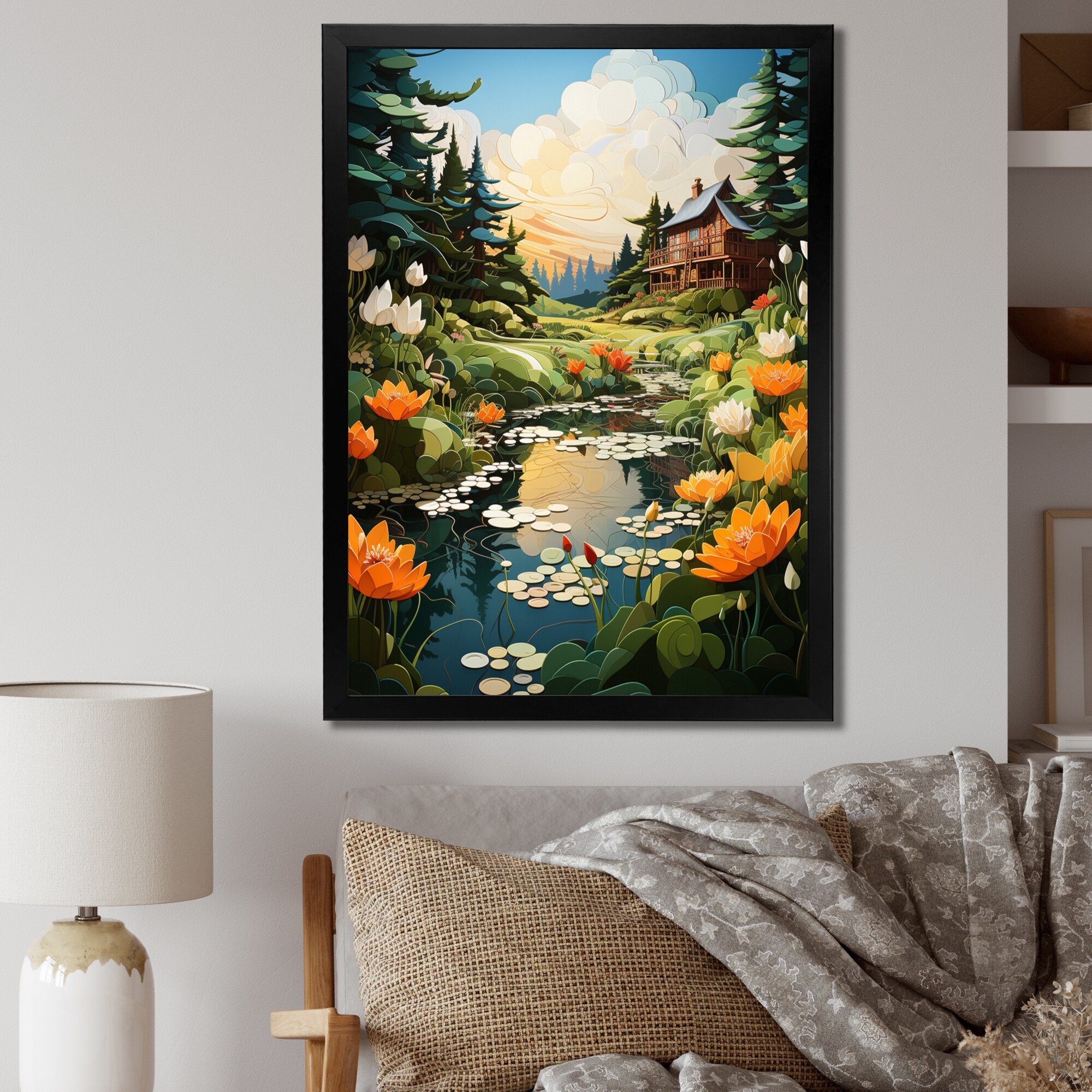 Designart "Farmhouse Countryside Reflections Papercut" Farm Framed Canvas Prints