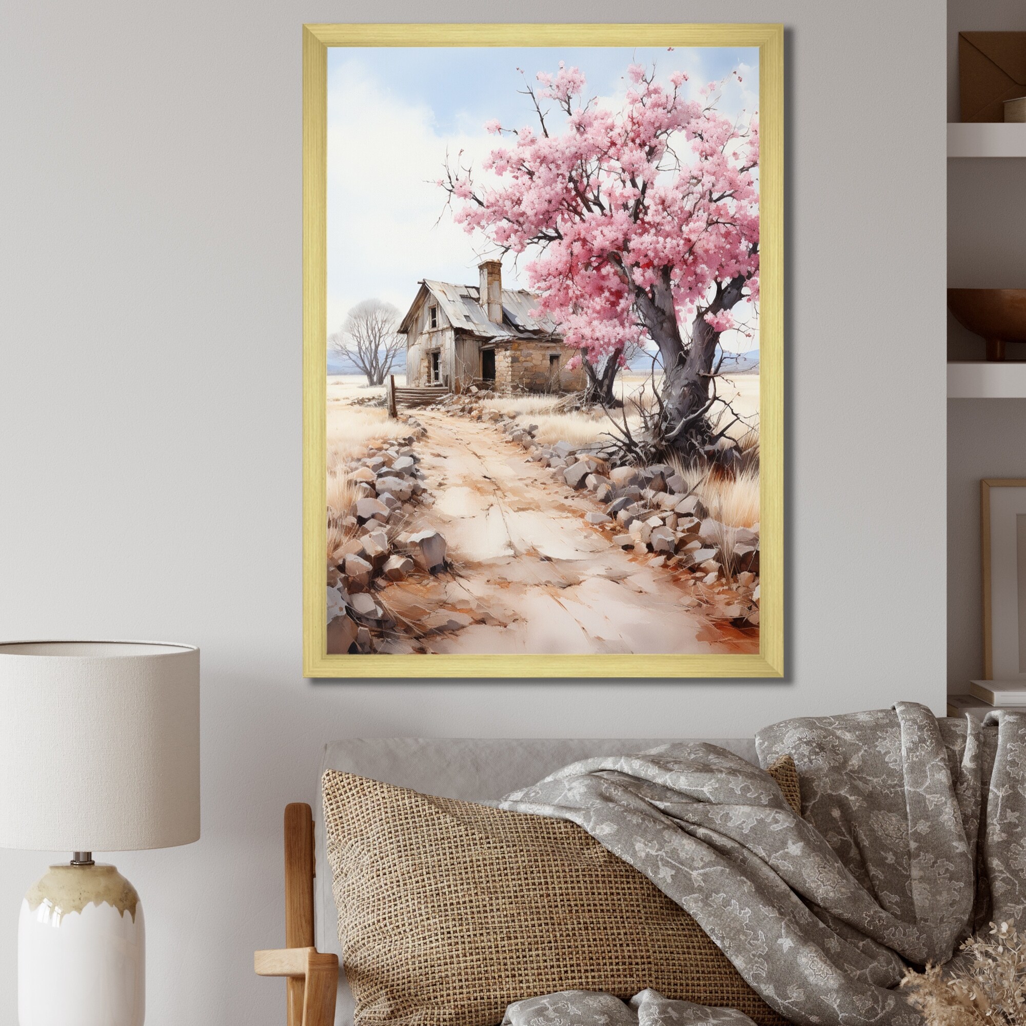 Designart "Pink Farmhouse Homestead Harmony III" Farm Framed Wall Decor