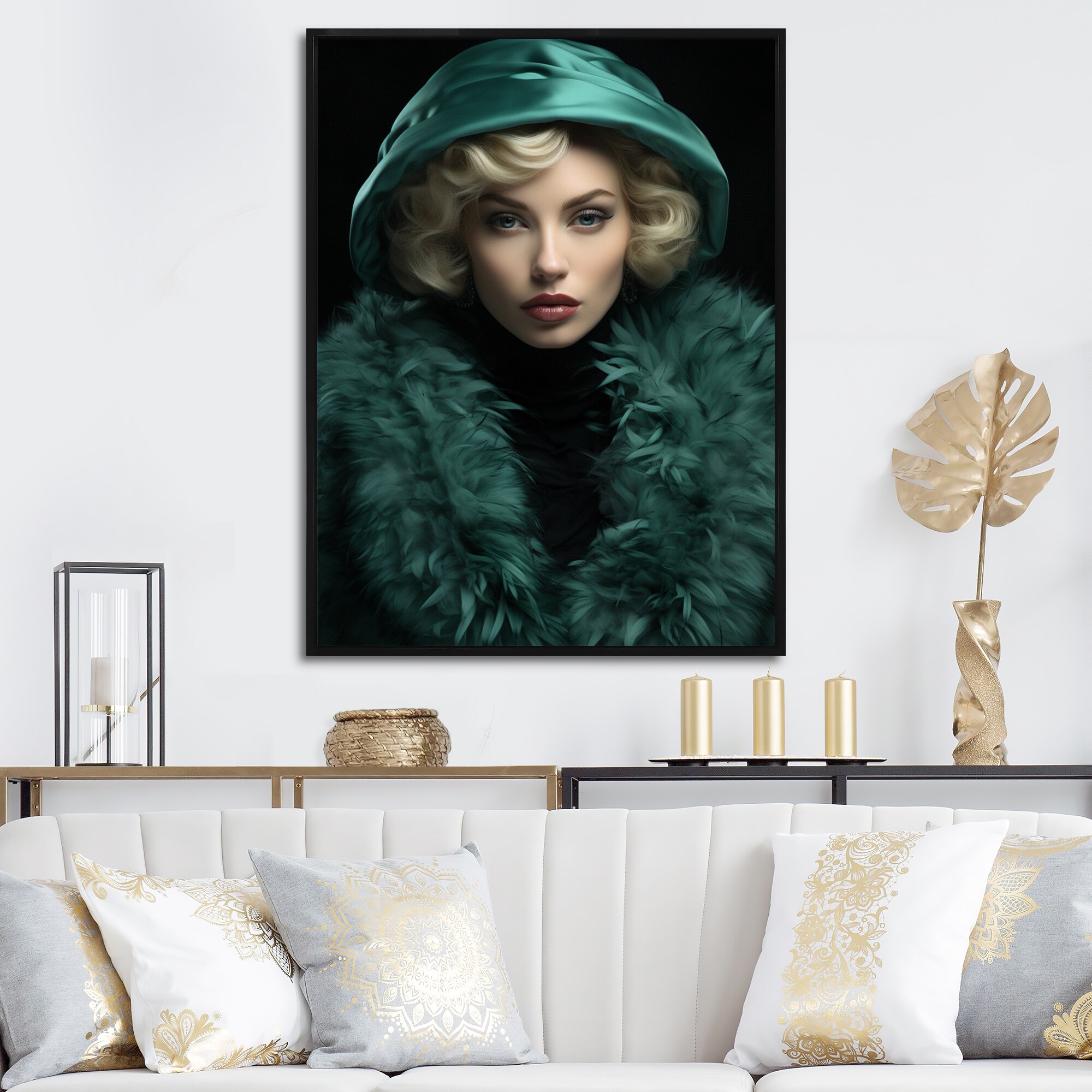 Designart "Green Highfashion Portait" Fashion Framed Wall Decor
