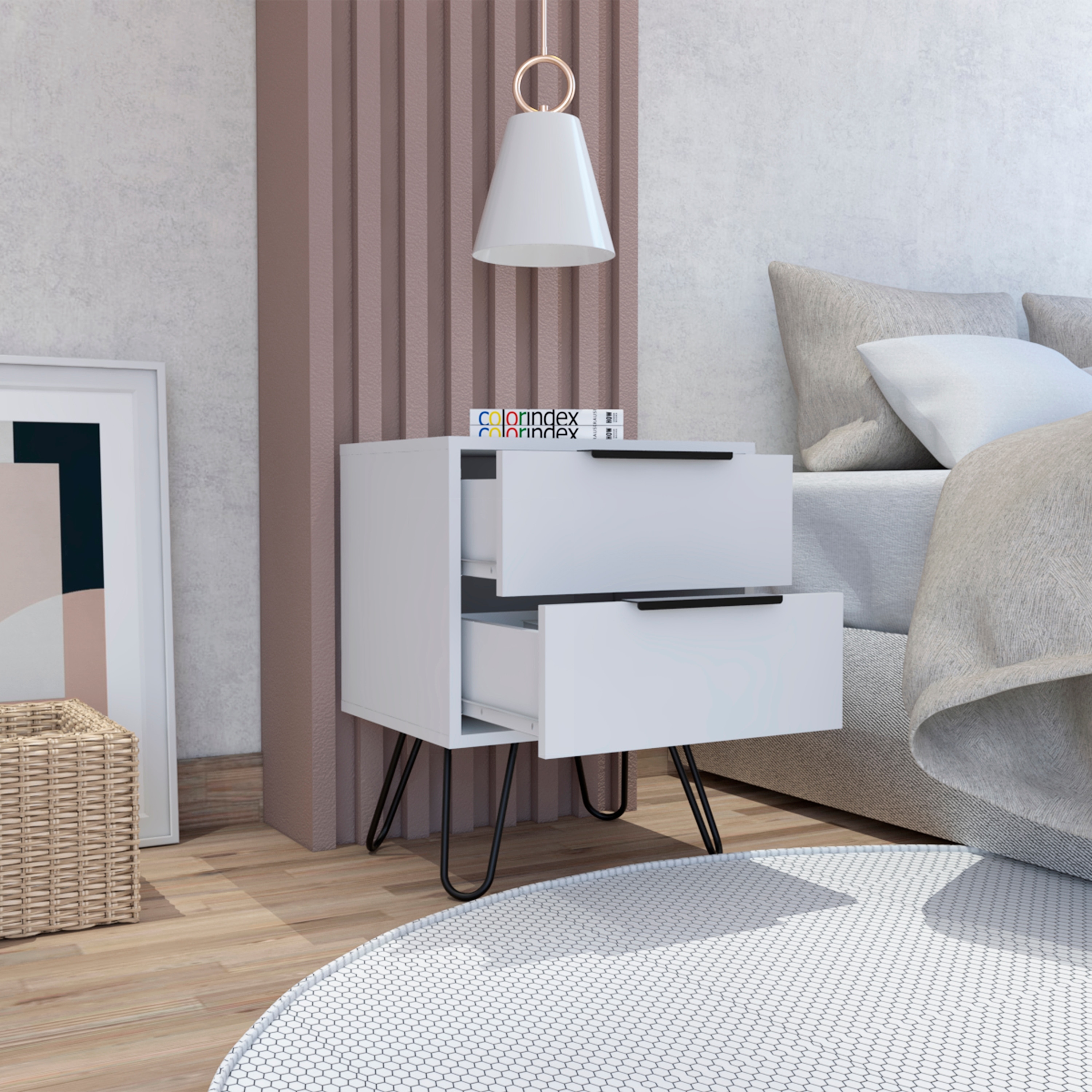 Minimalist Nightstand Fashion Nightstand with 2 Drawers 4 Support Feet
