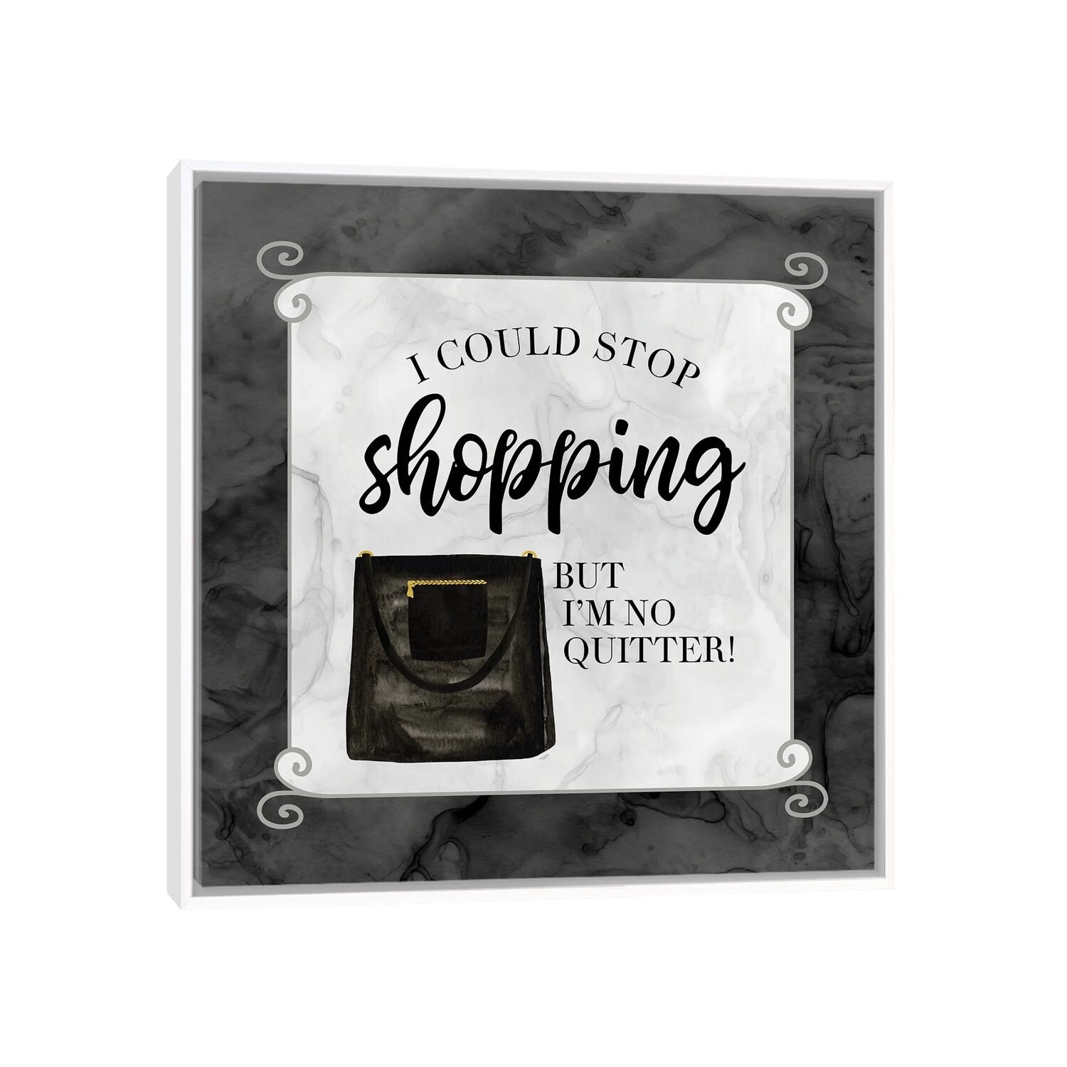 iCanvas "Fashion Logo - Silver on White" by Madeline Blake Framed