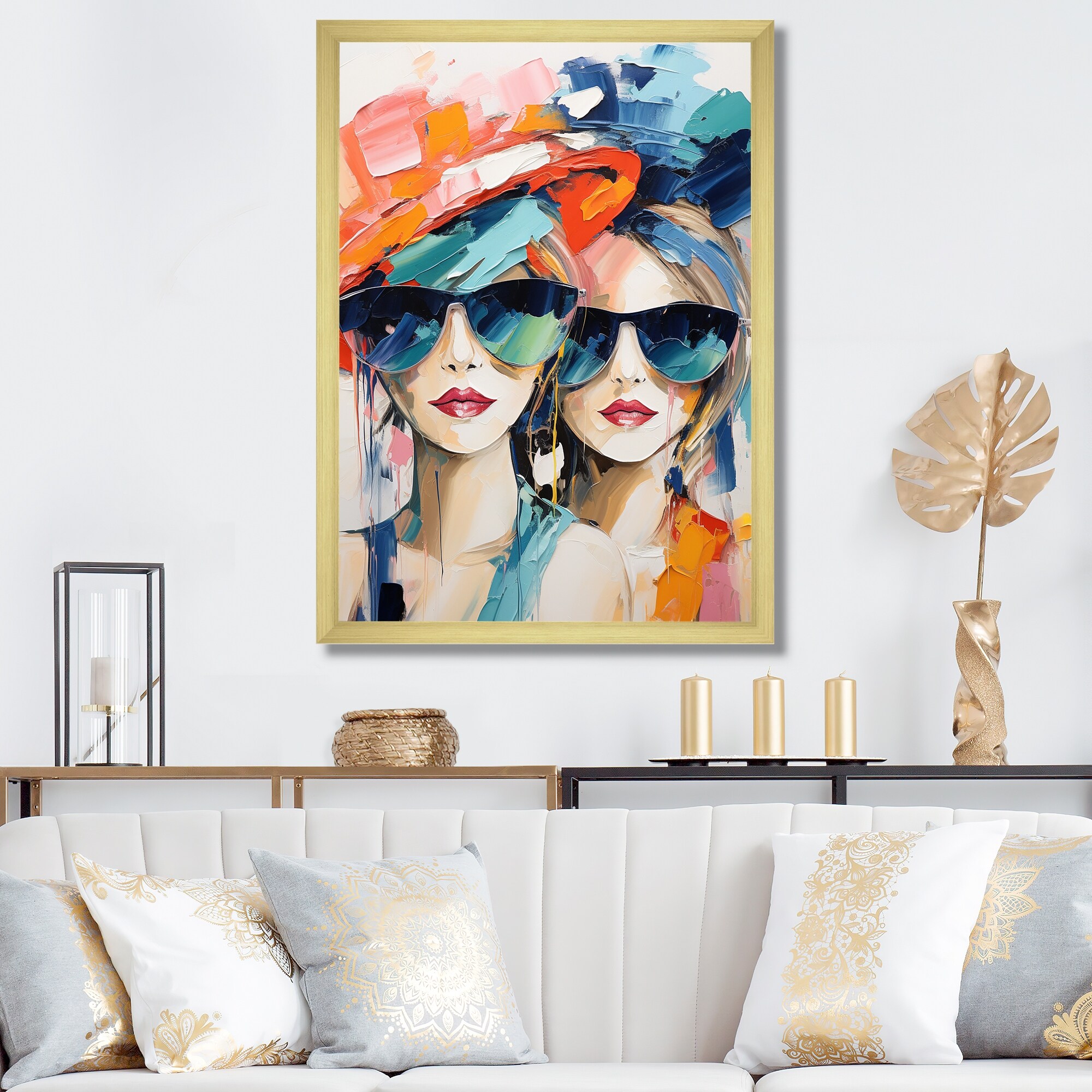 Designart "Glam Orange Beige Collage V" Fashion Framed Wall Art Prints
