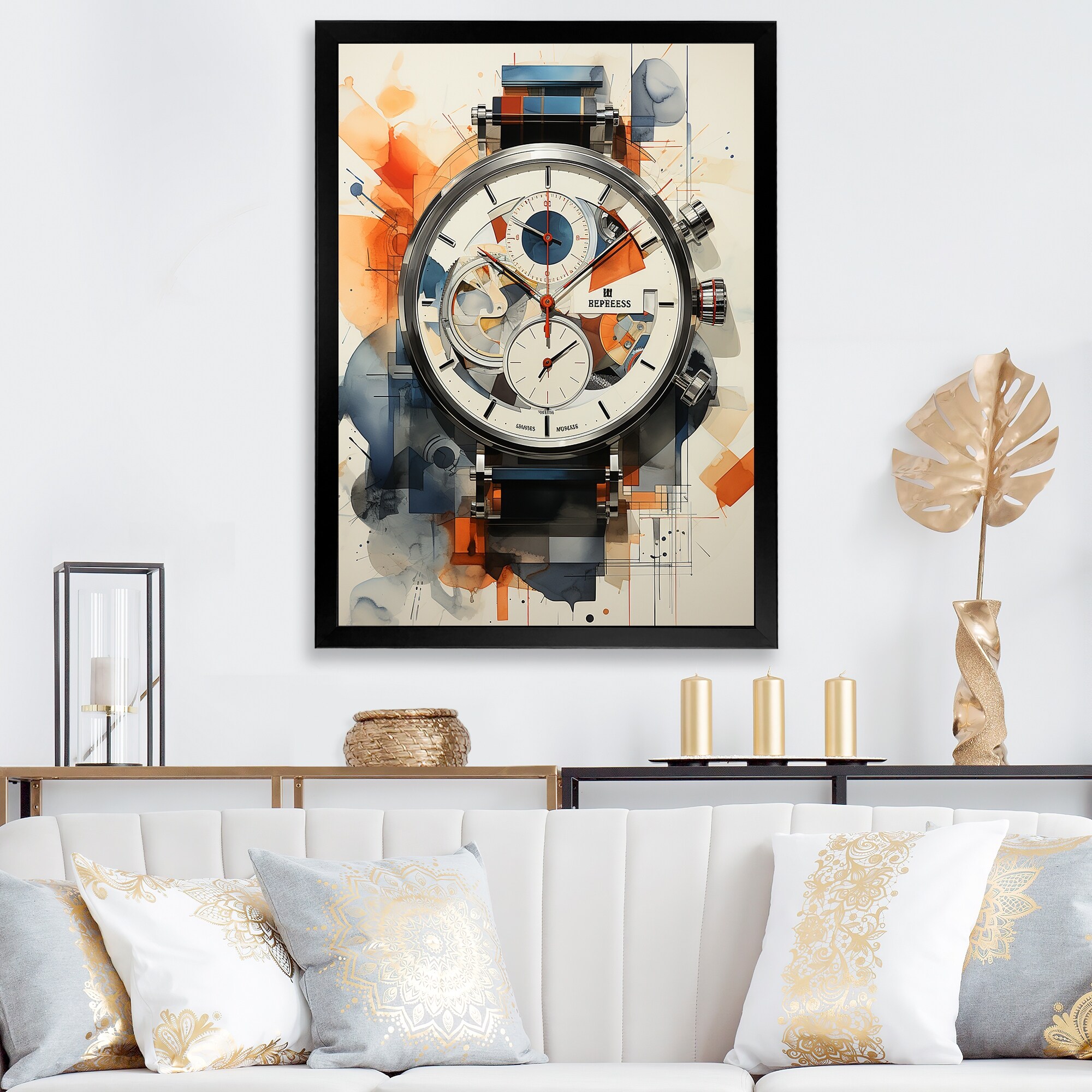 Designart "Beige Minimalism Watch I" Fashion Framed Canvas Prints