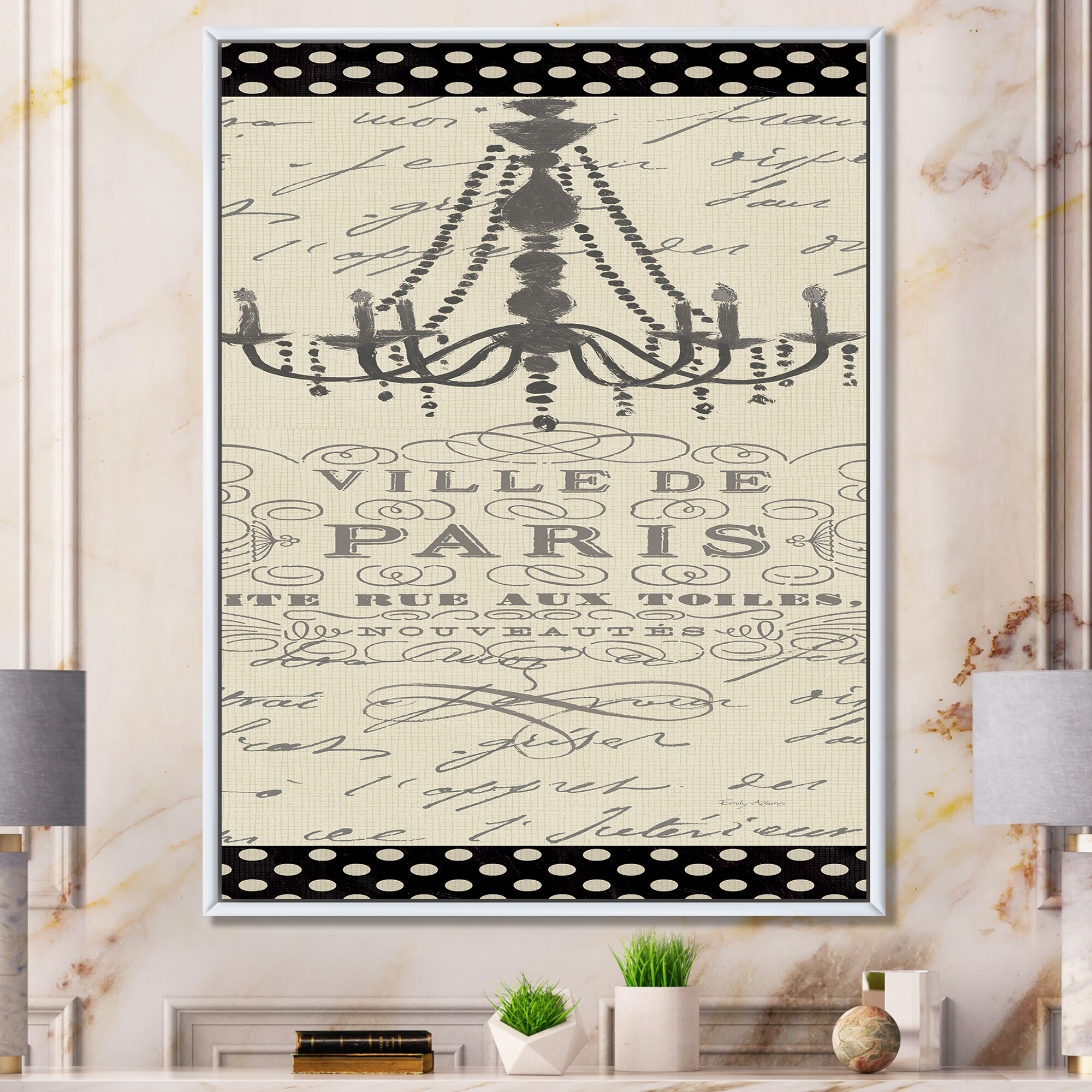 Designart "French chandeliers Couture I" Fashion Framed Canvas - Grey