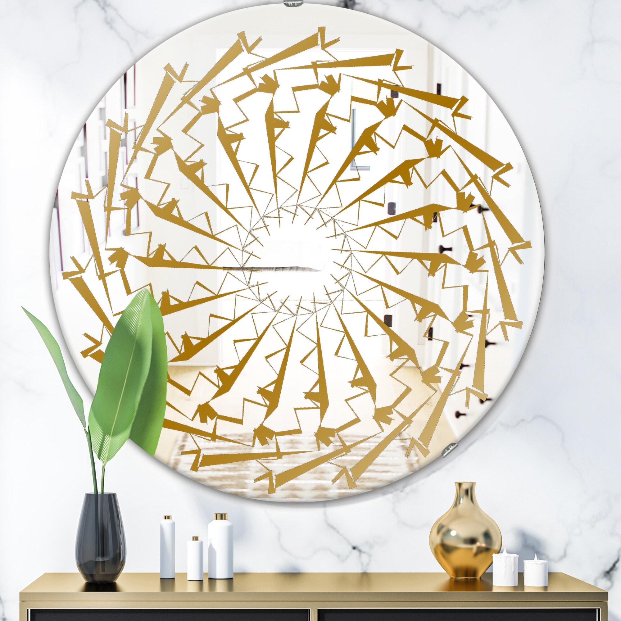 Designart 'Gold Flashes' Printed Glam Mirror - Round Wall Mirror - Gold