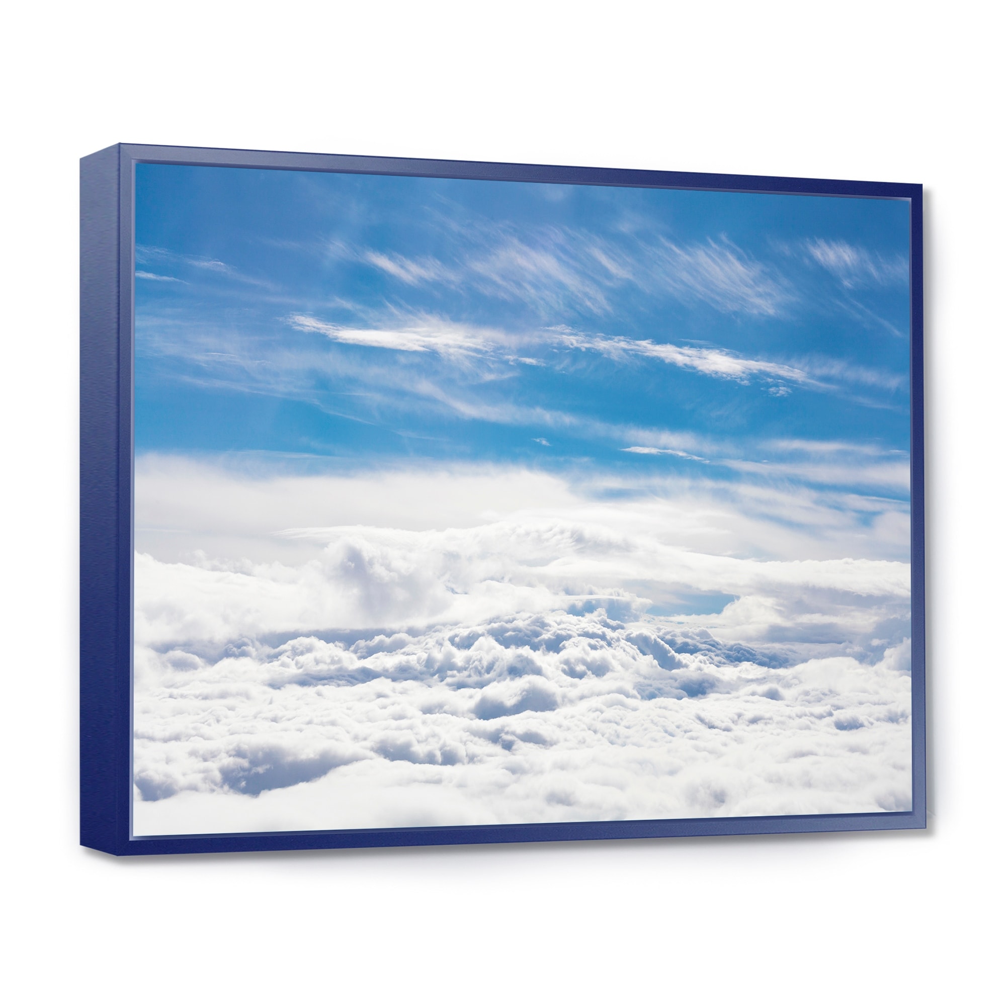 Designart "Flight over Bright Clouds" Contemporary Landscape Framed Canvas Art