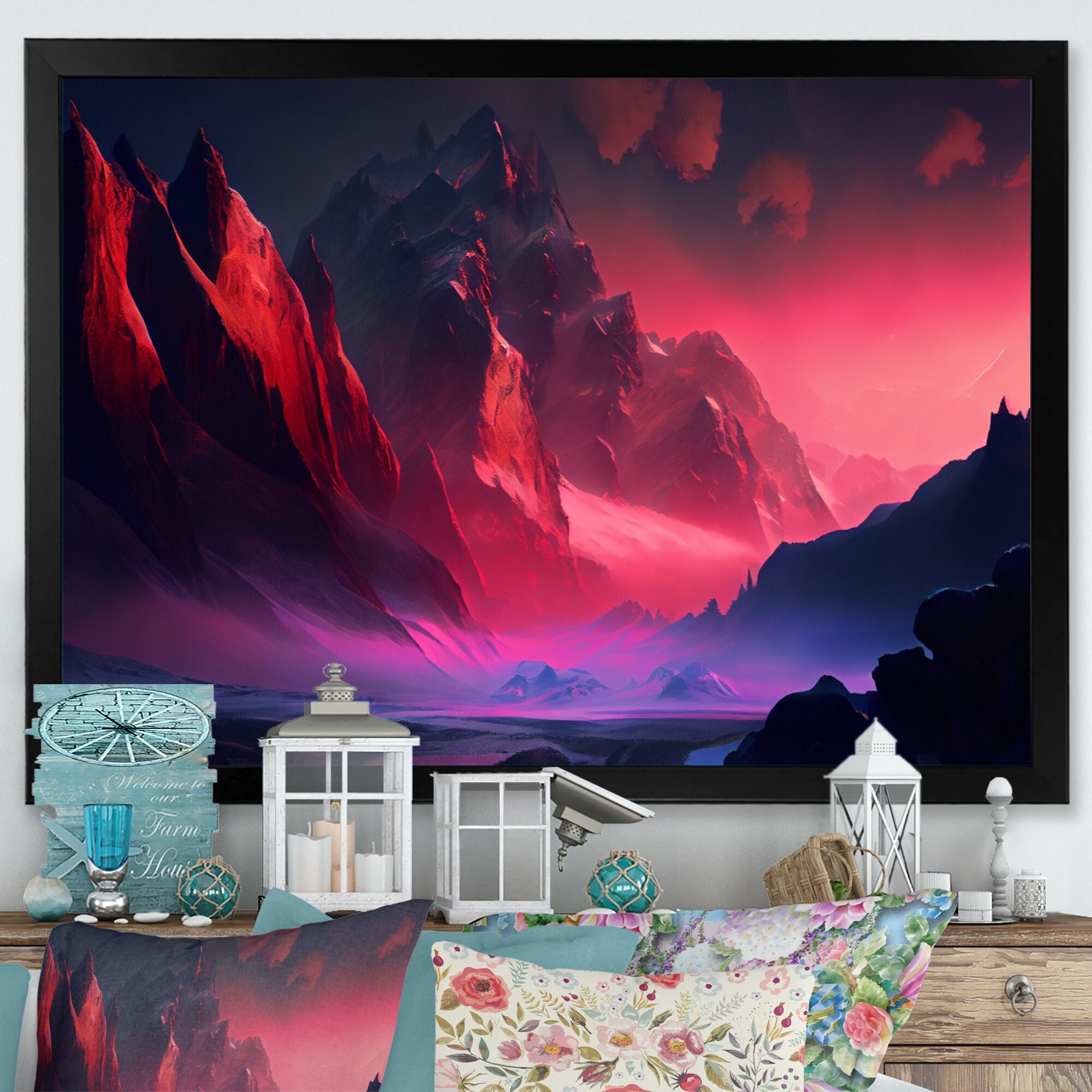 Designart "Mysterious Magenta Fog At Dawn I" Landscape Mountains Framed Art Print