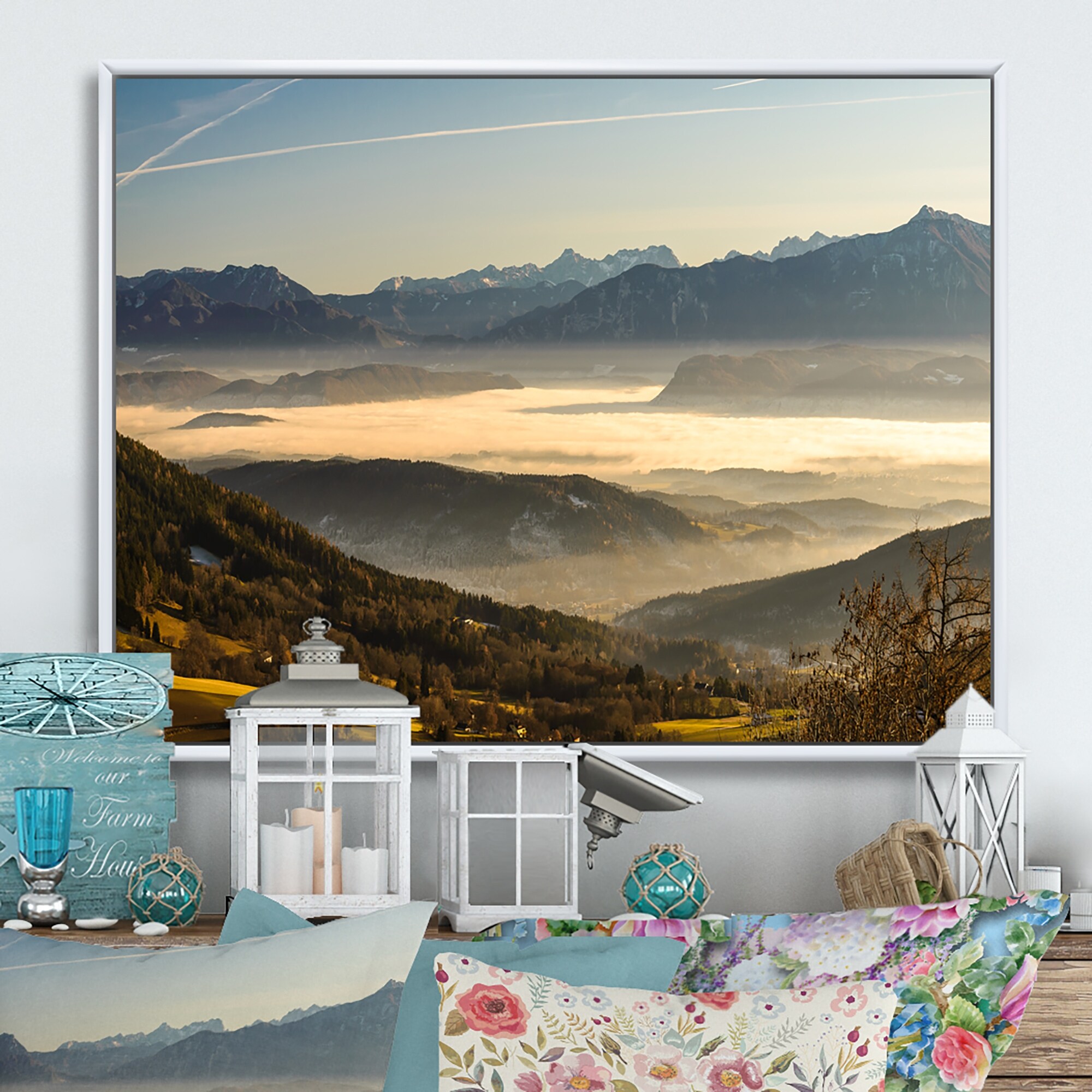 Designart "Mountain Valley in Fog" Traditional Framed Canvas artwork