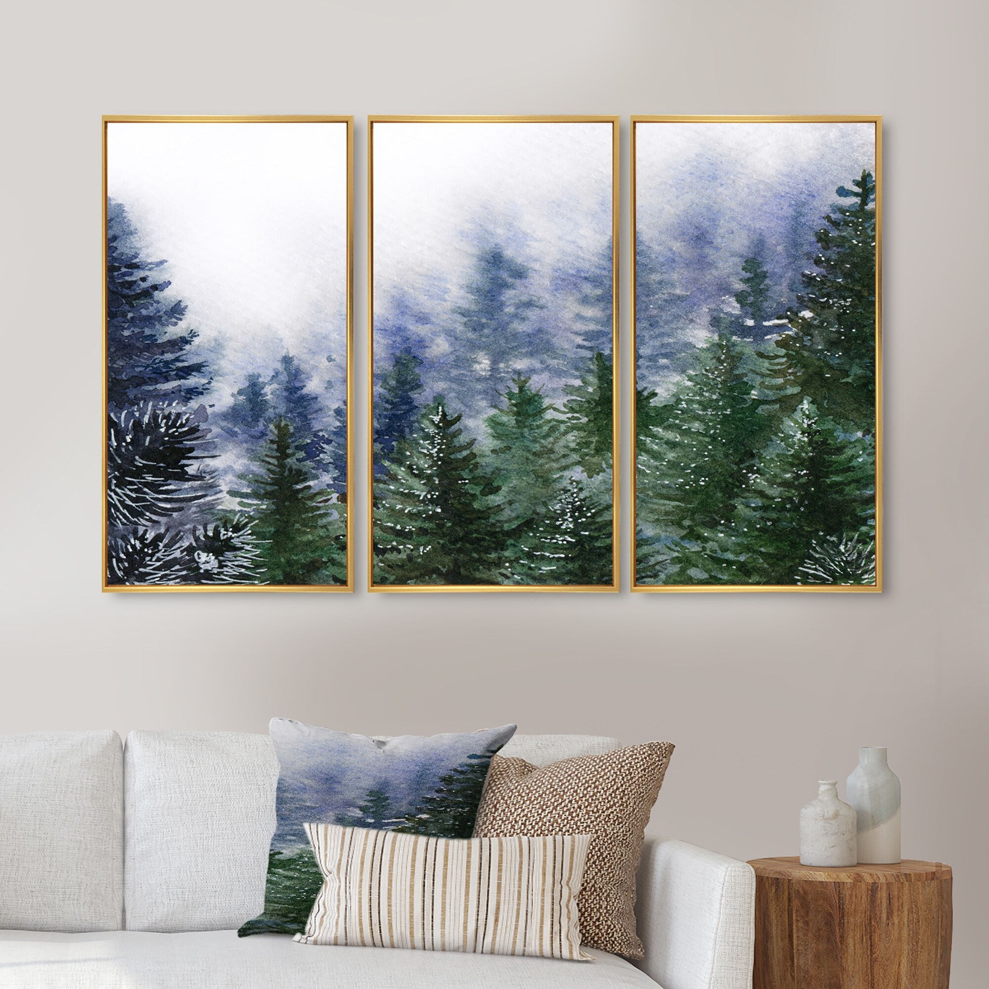 Designart "Nature Forest in Fog Scene" Country Framed Art Set of 3 - 4 Colors of Frames