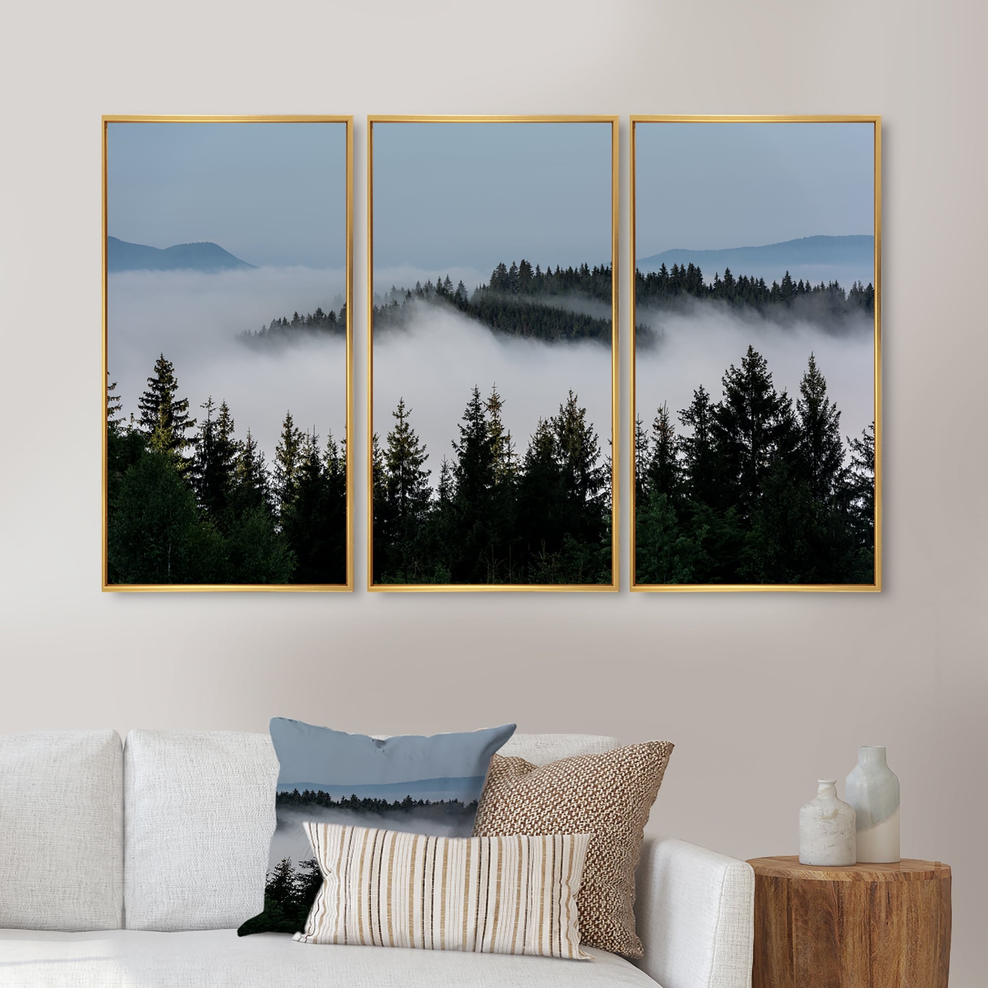 Designart "Dark Trees and Fog Over Mountains" Landscape Framed Art Prints Set of 3 - 4 Colors of Frames