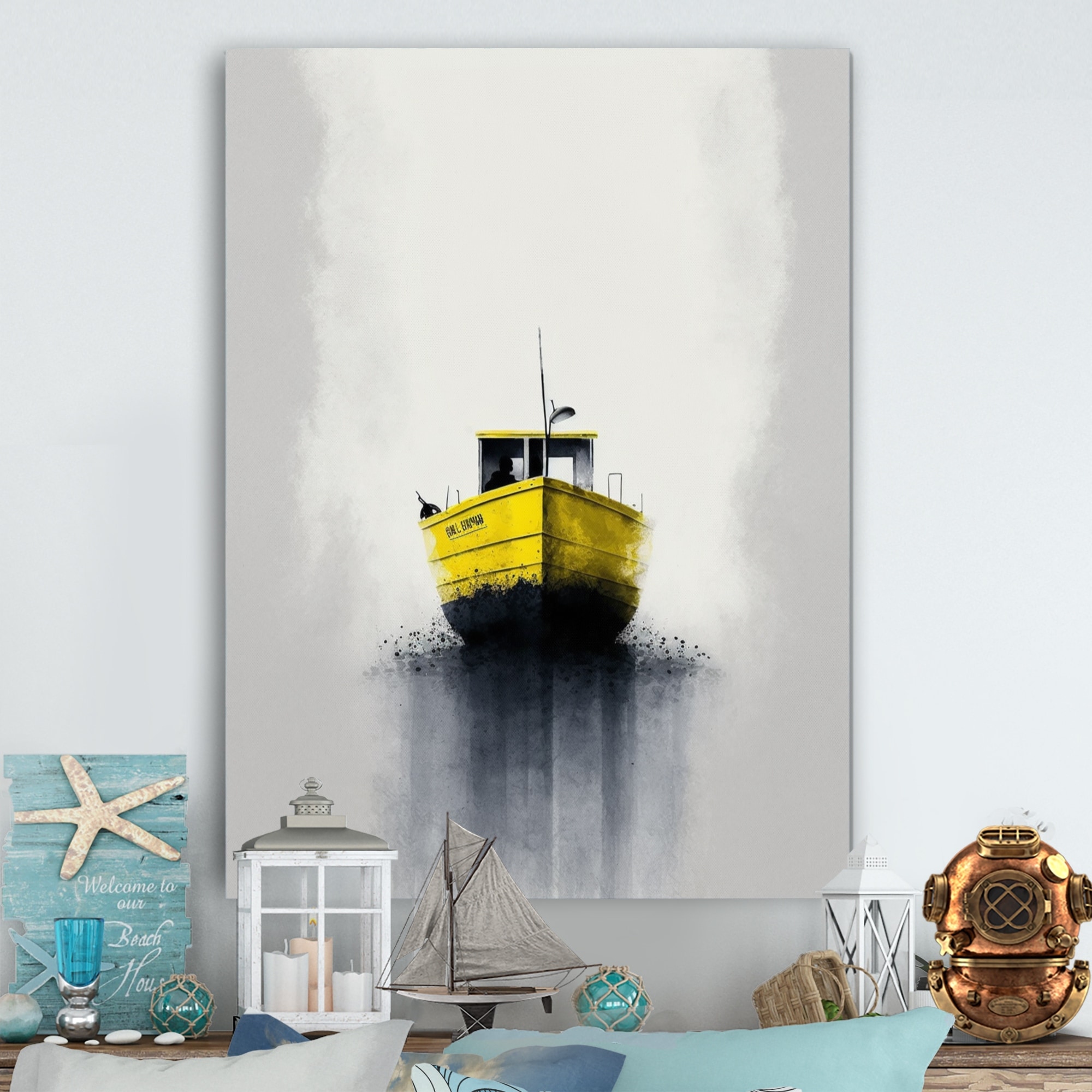 Designart "Yellow Fog Boat on Lake III" Coastal Boat Metal Wall Art