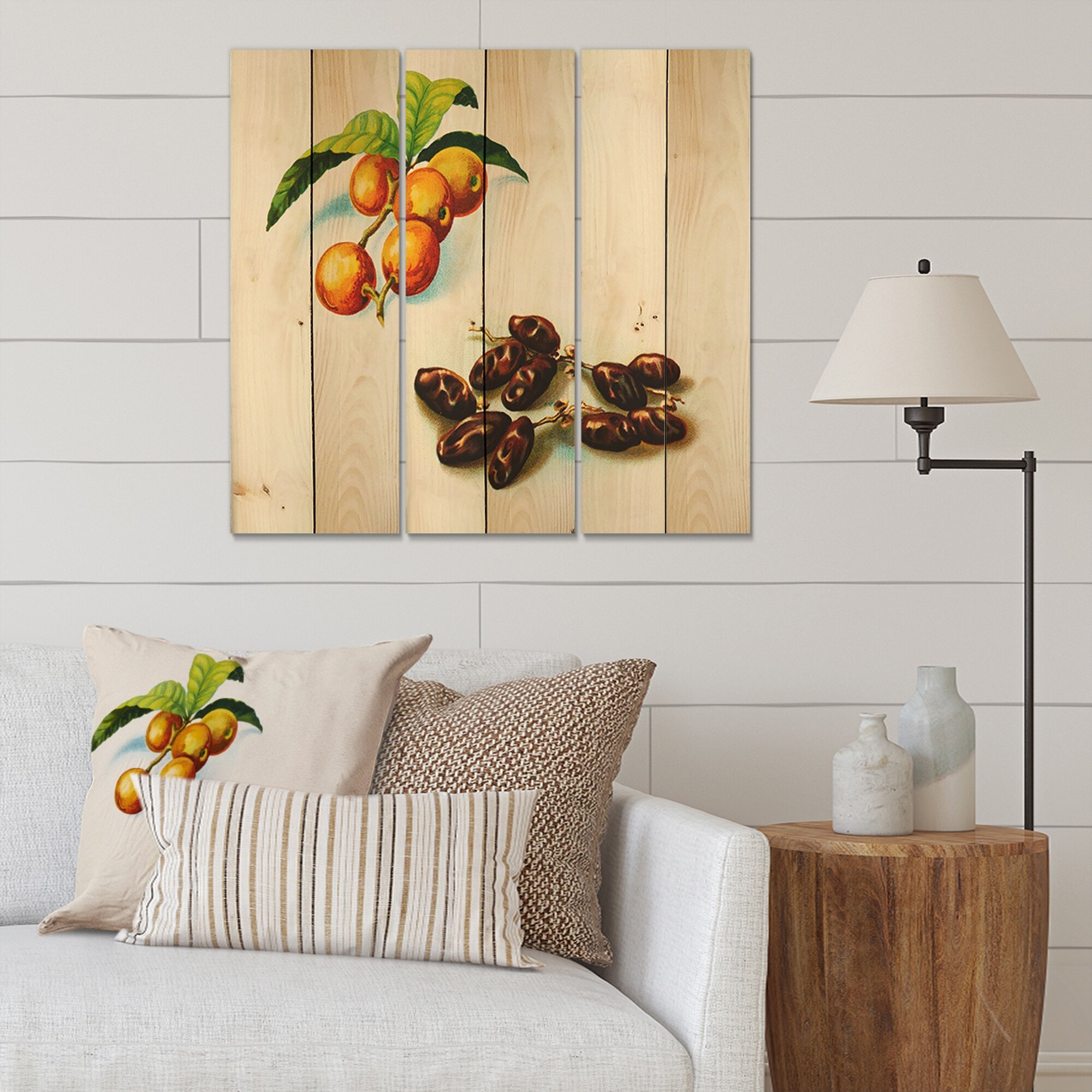 Designart 'Vintage Fruits IV' Farmhouse Print on Natural Pine Wood - 3 Panels