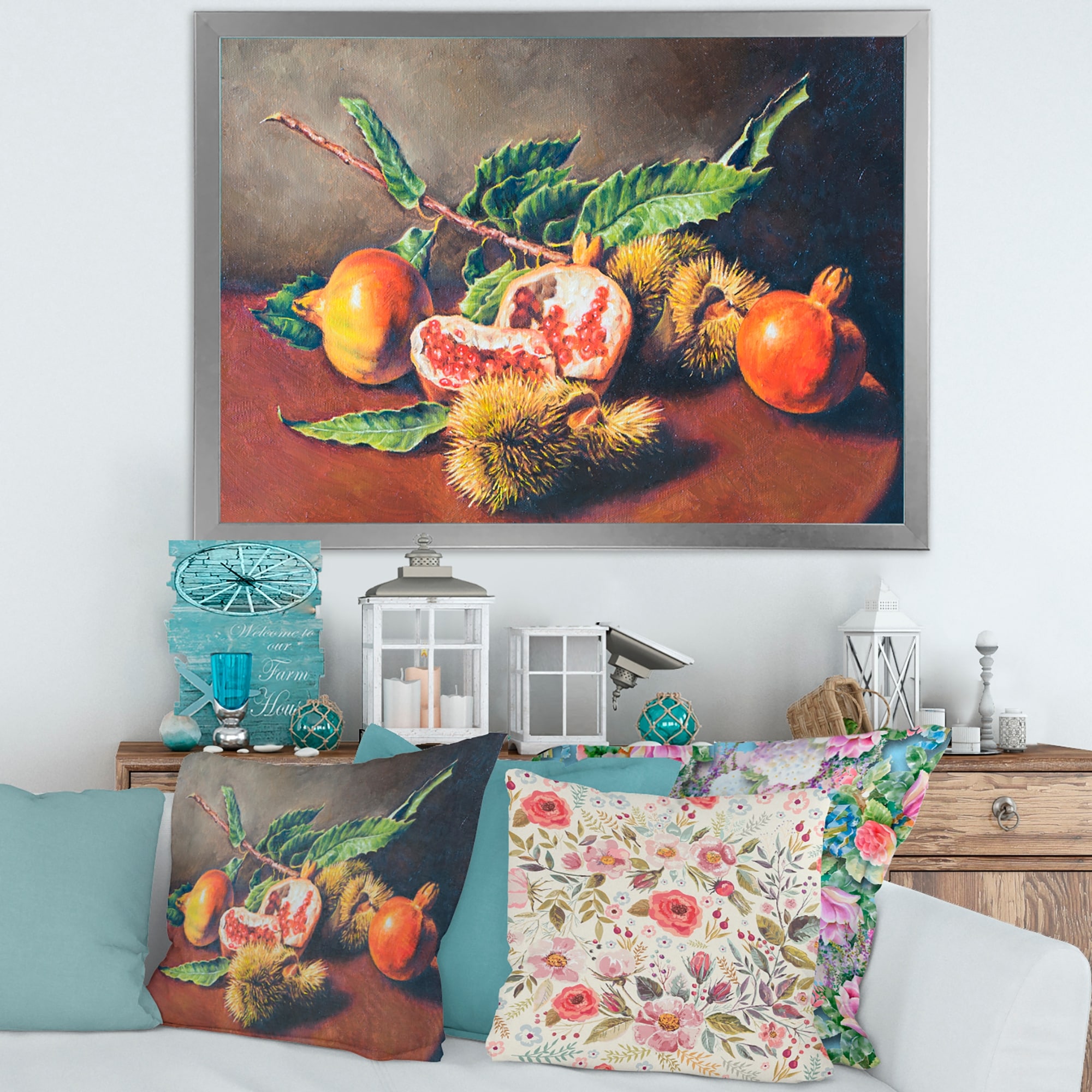 Designart "Still Life Farmhouse Flowers And Fruits V" Traditional Framed Wall Art
