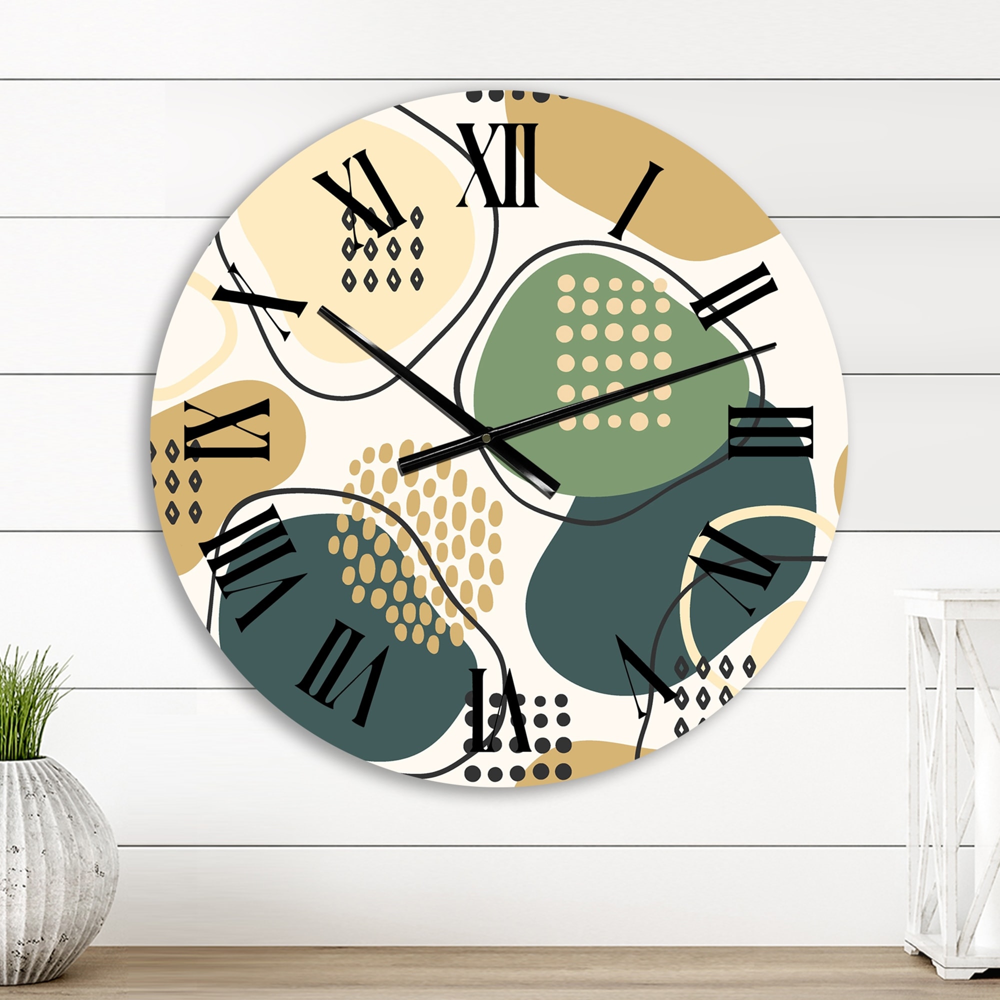 Designart, 'Lemon Fruit Geometric Shapes I' Mid-Century Modern wall clock