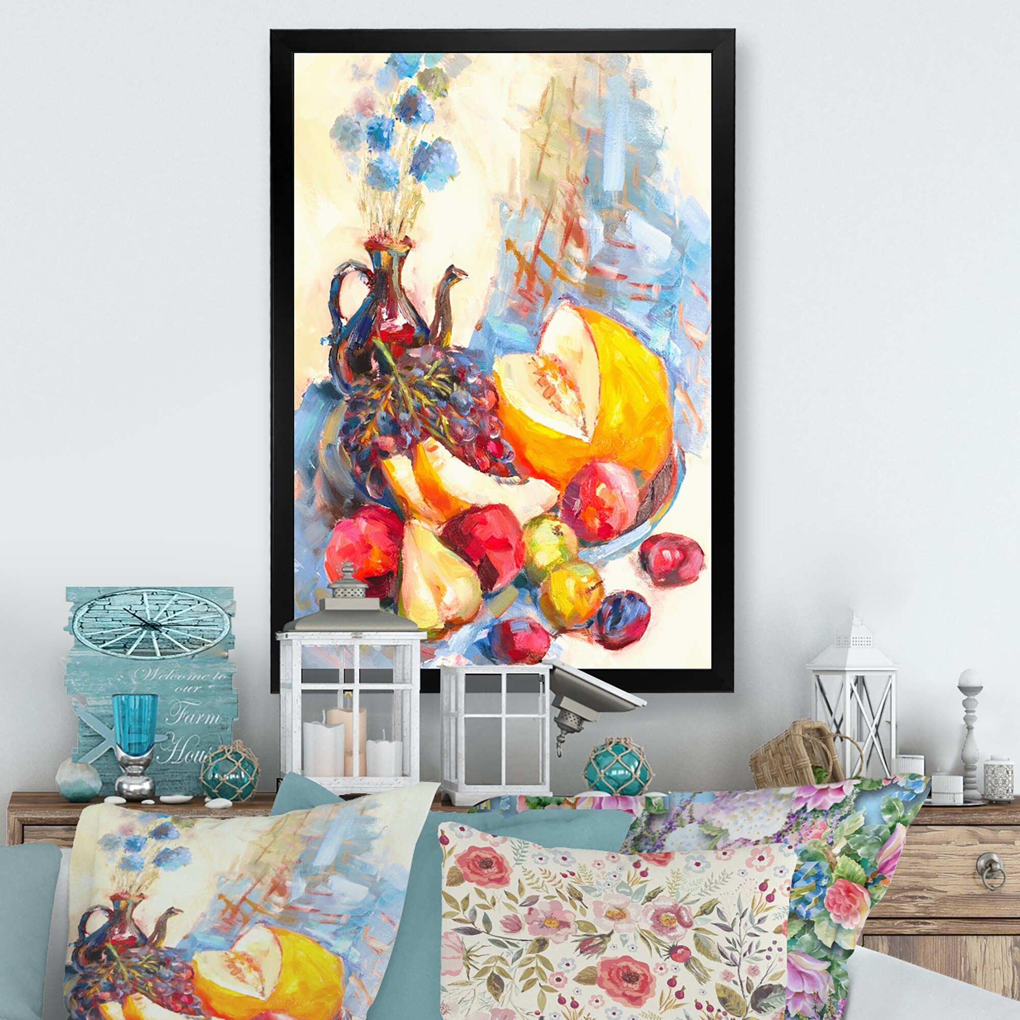 Designart "Flowers And Fruits Impressionism II" Farmhouse Framed Wall Decor
