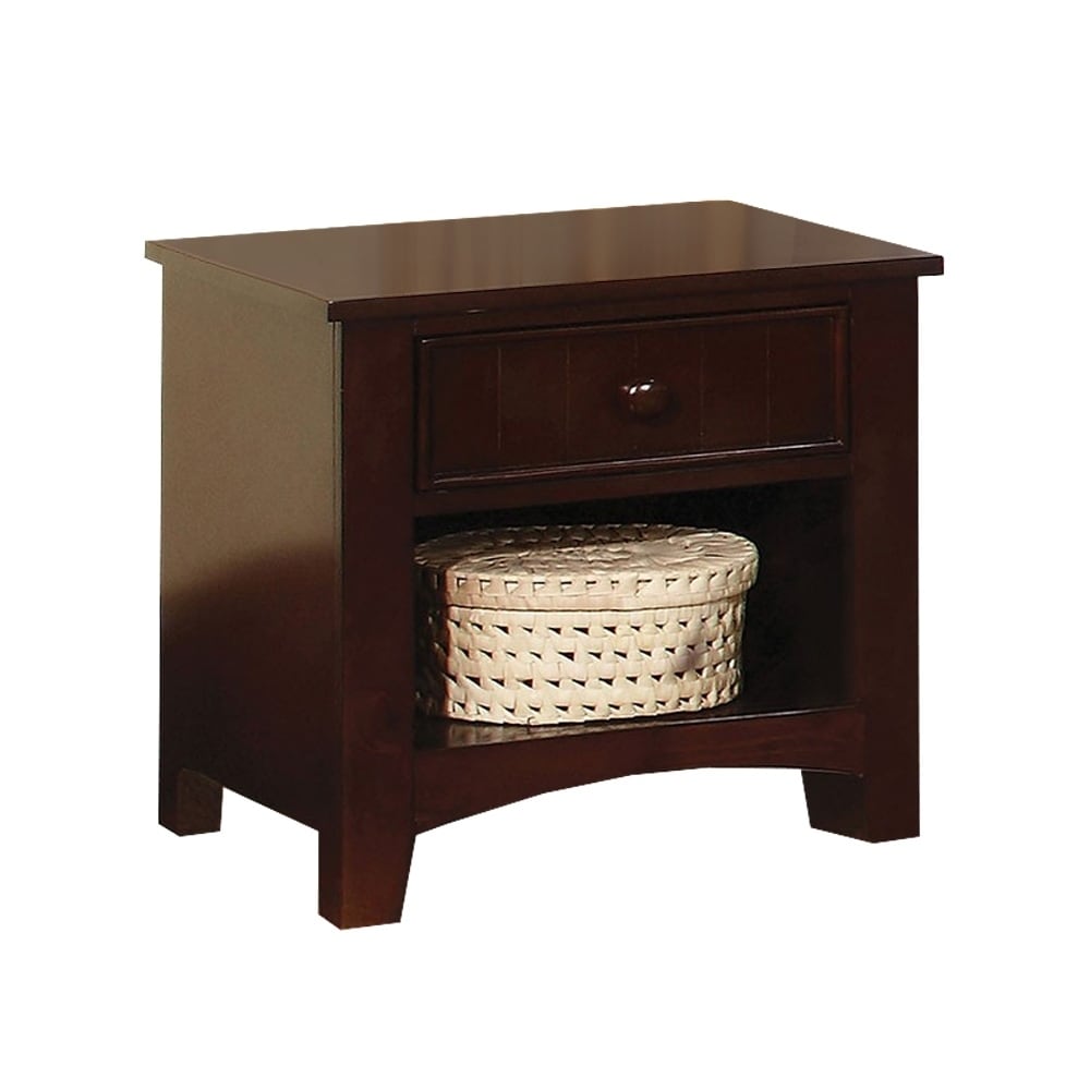American Furniture Classics Model 82960, Solid Pine Nightstand with One Drawer and Open Storage in Dark Espresso