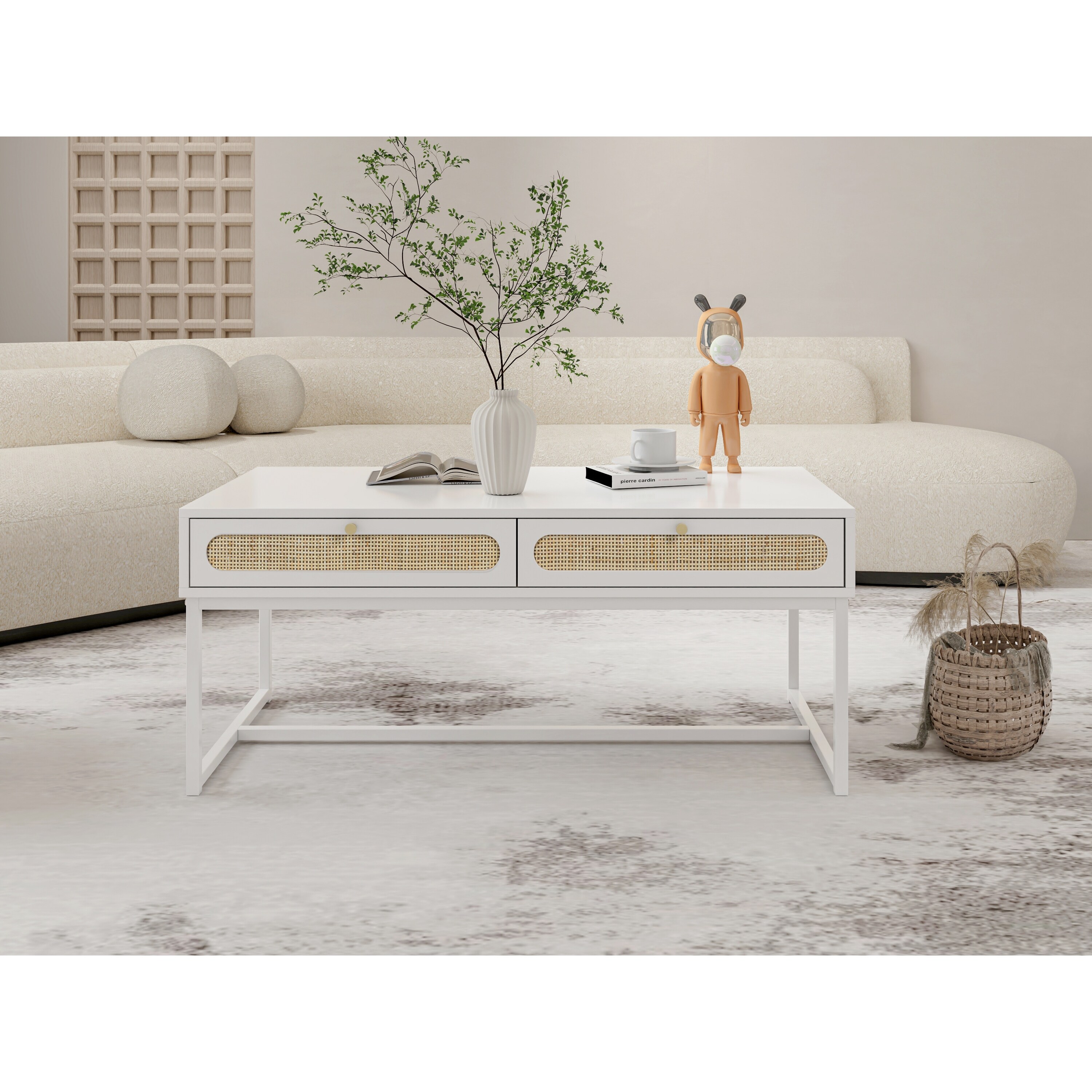 2 Rattan Drawer Coffee Table,Modern Furniture Decor,for Living Room Reception,Rectangular Unique Coffee Table