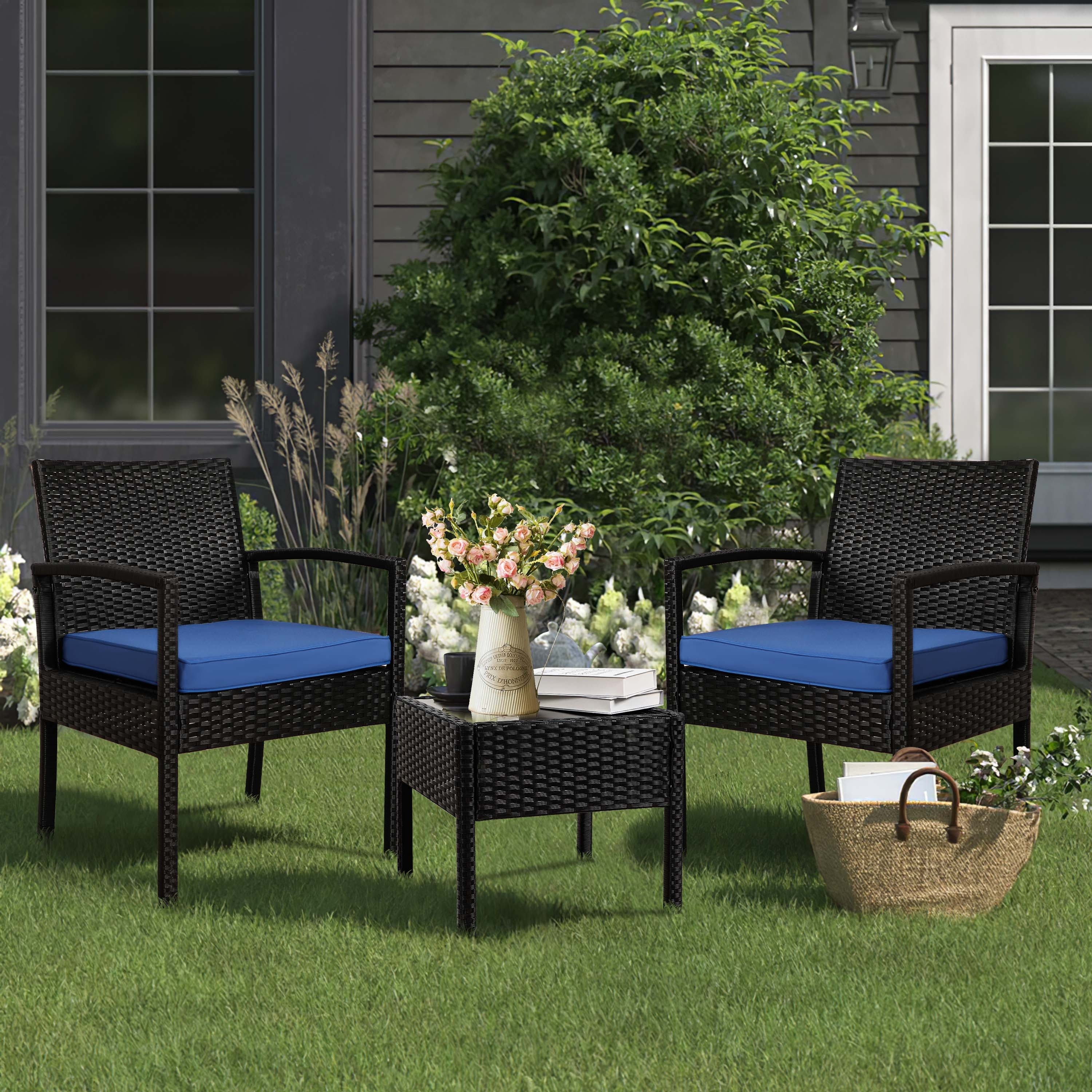 3 Pieces Patio Wicker Rattan Furniture Set with Cushion