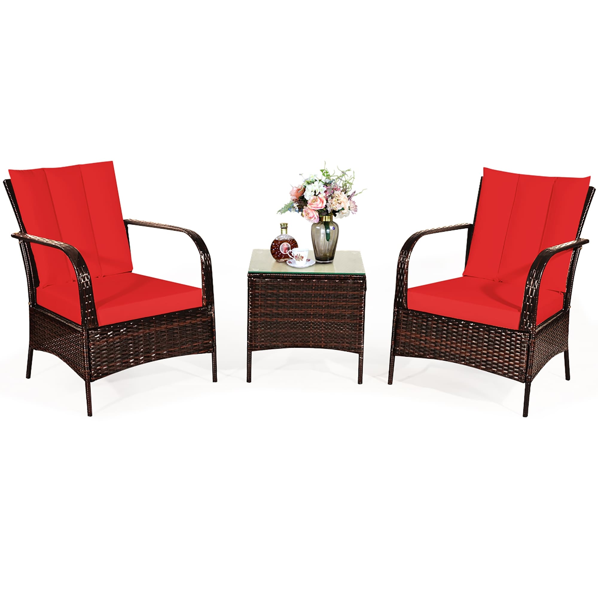 Gymax 3PCS Patio Outdoor Rattan Furniture Set w/ Coffee Table Red - See Details