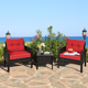 4PCS Patio Furniture Set Conversation Set with Glass Top Coffee Table