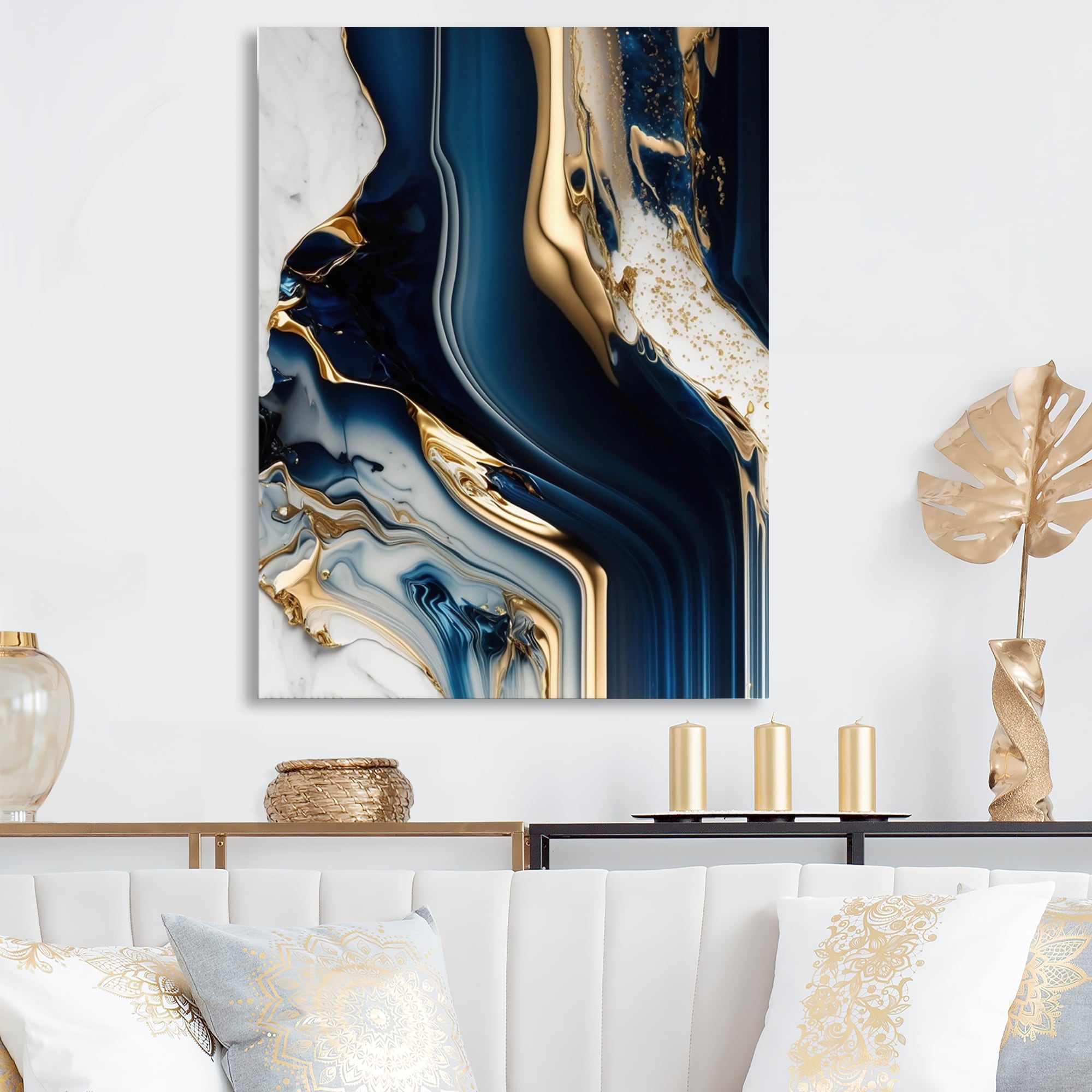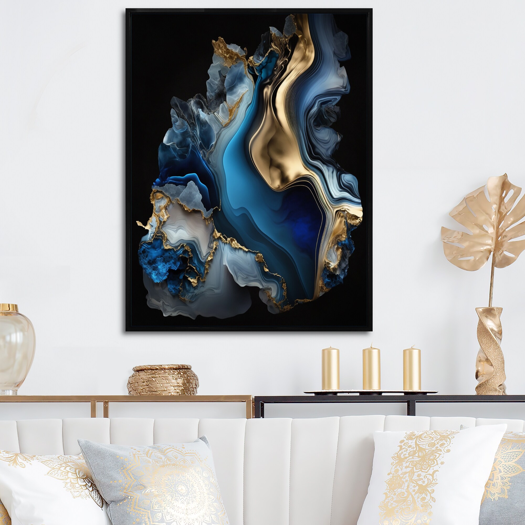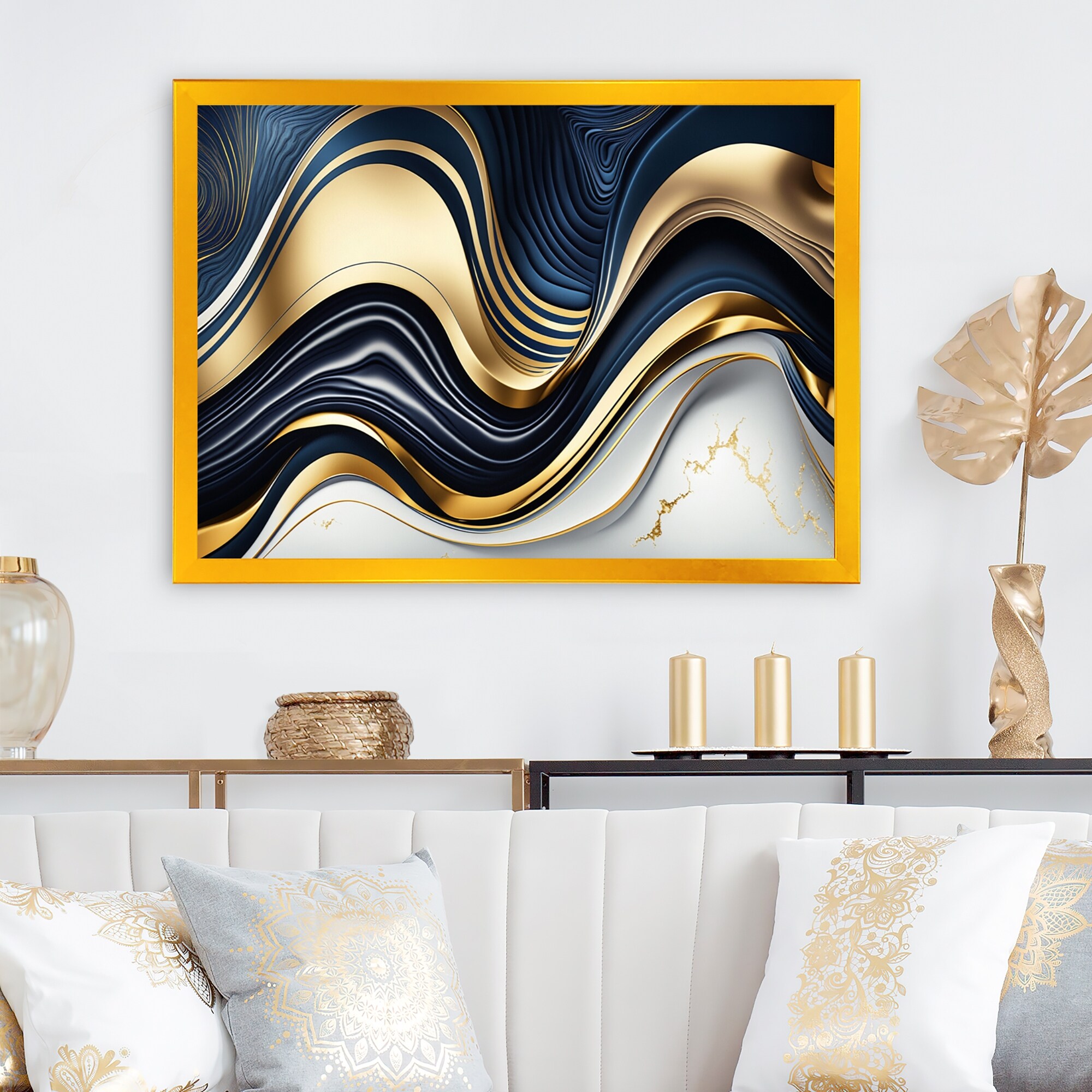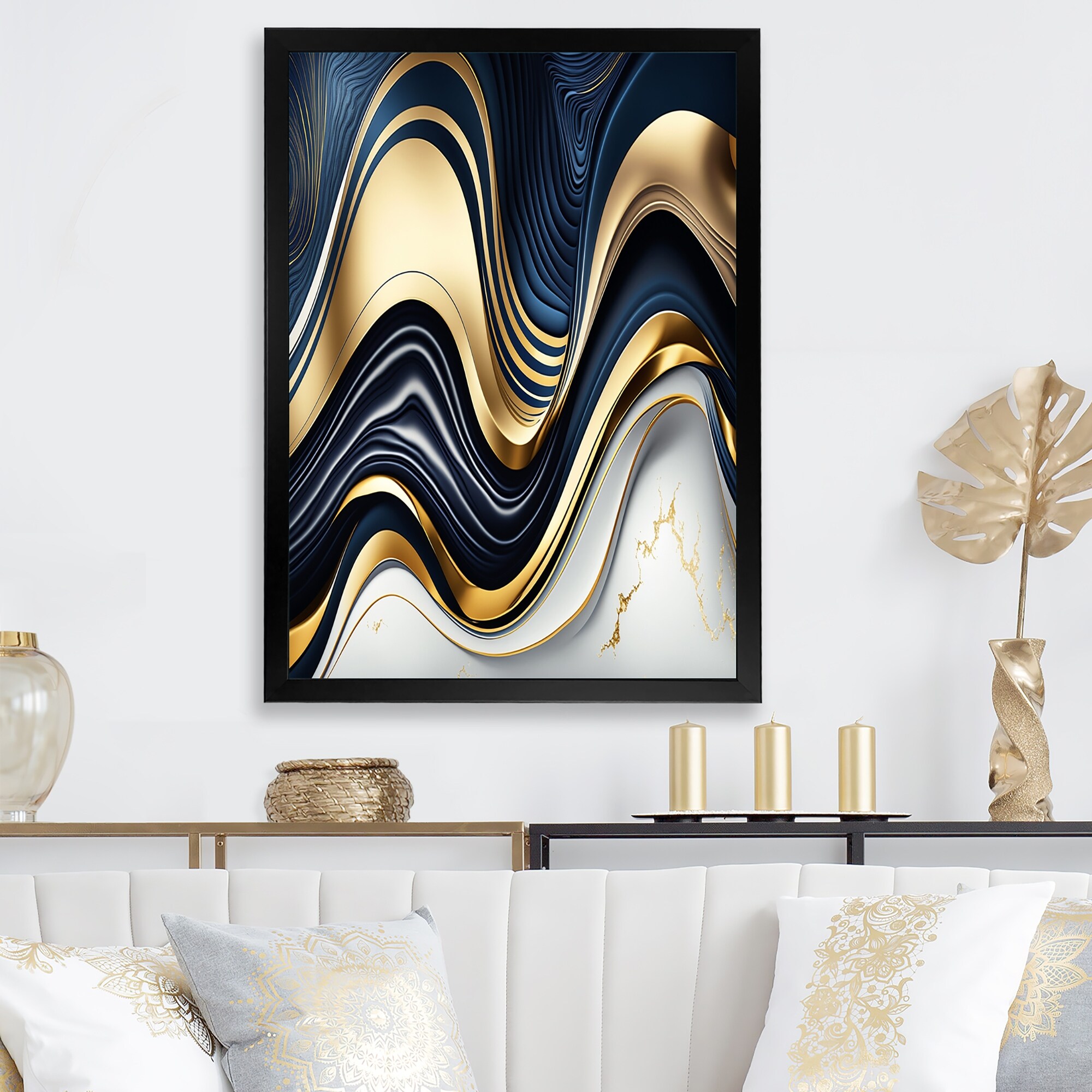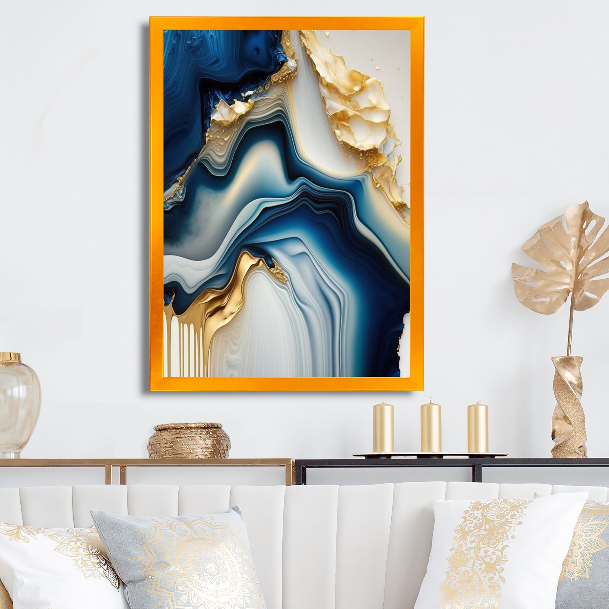 Designart "Abstract Geode Waves Blue And Gold IV" Abstract Framed Art Print