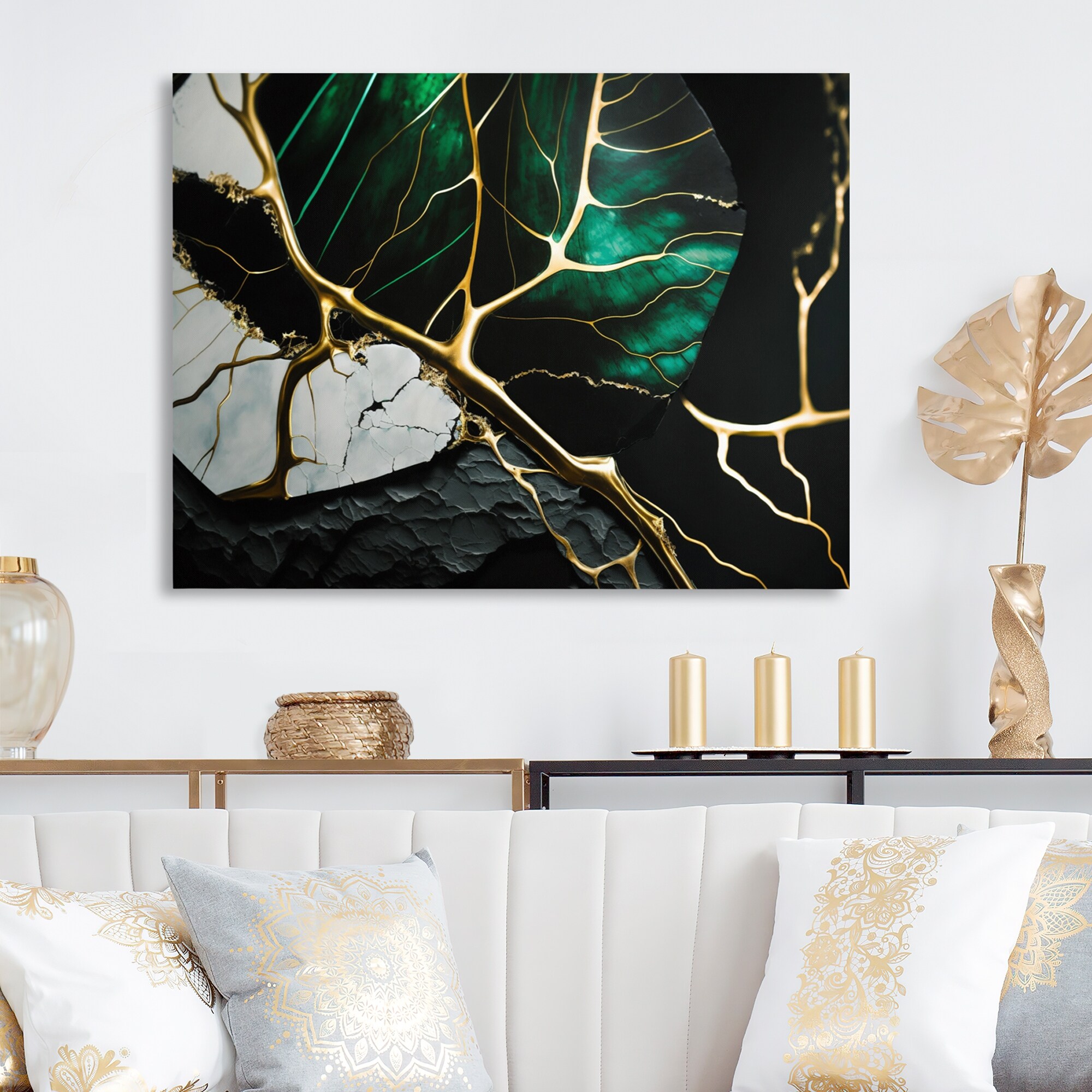 Designart 'Abstract Geode Gold And Green Marble II' Abstract Marble Metal Wall Art