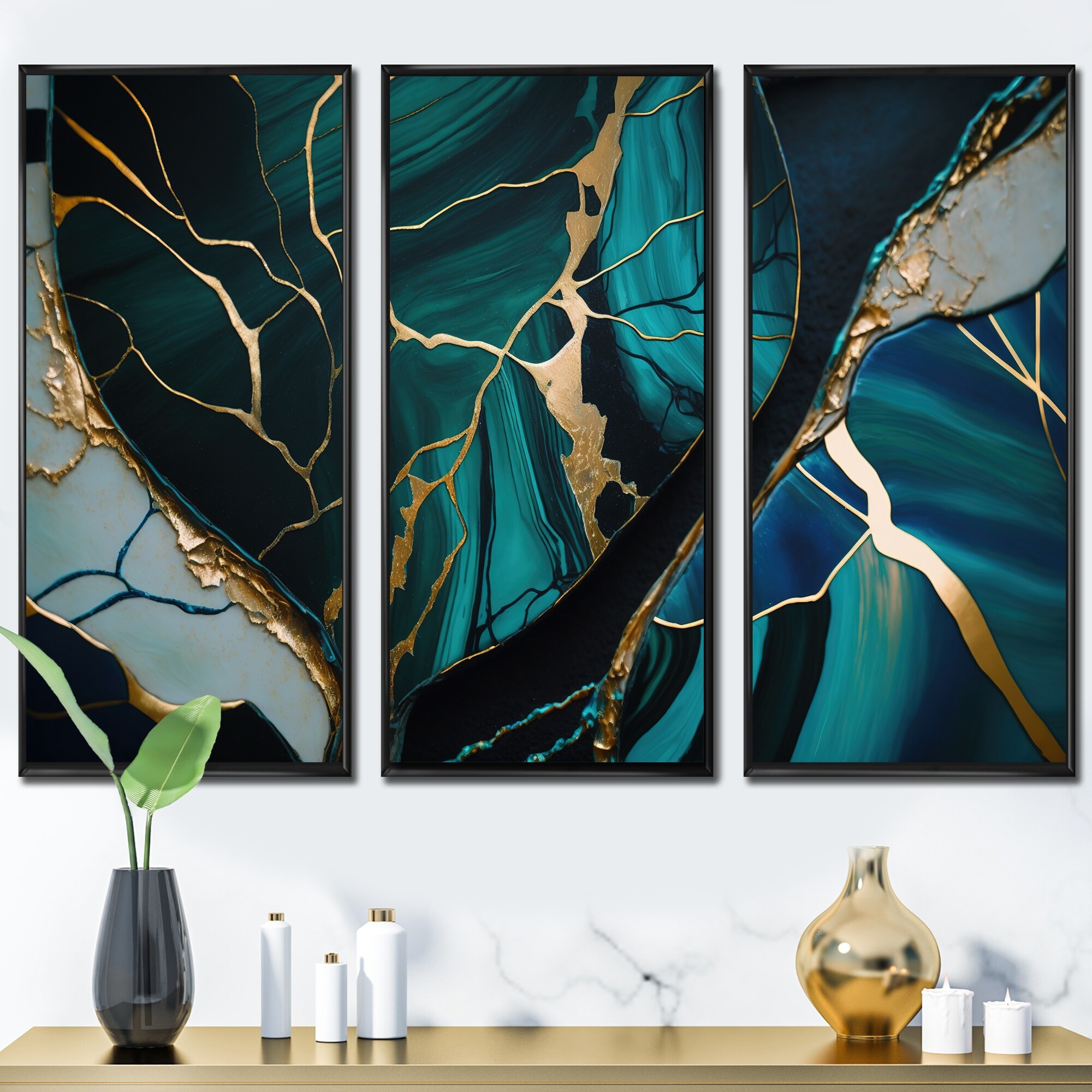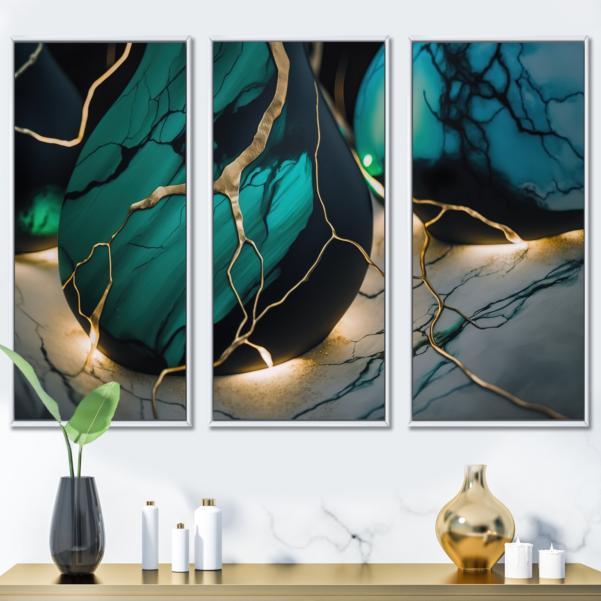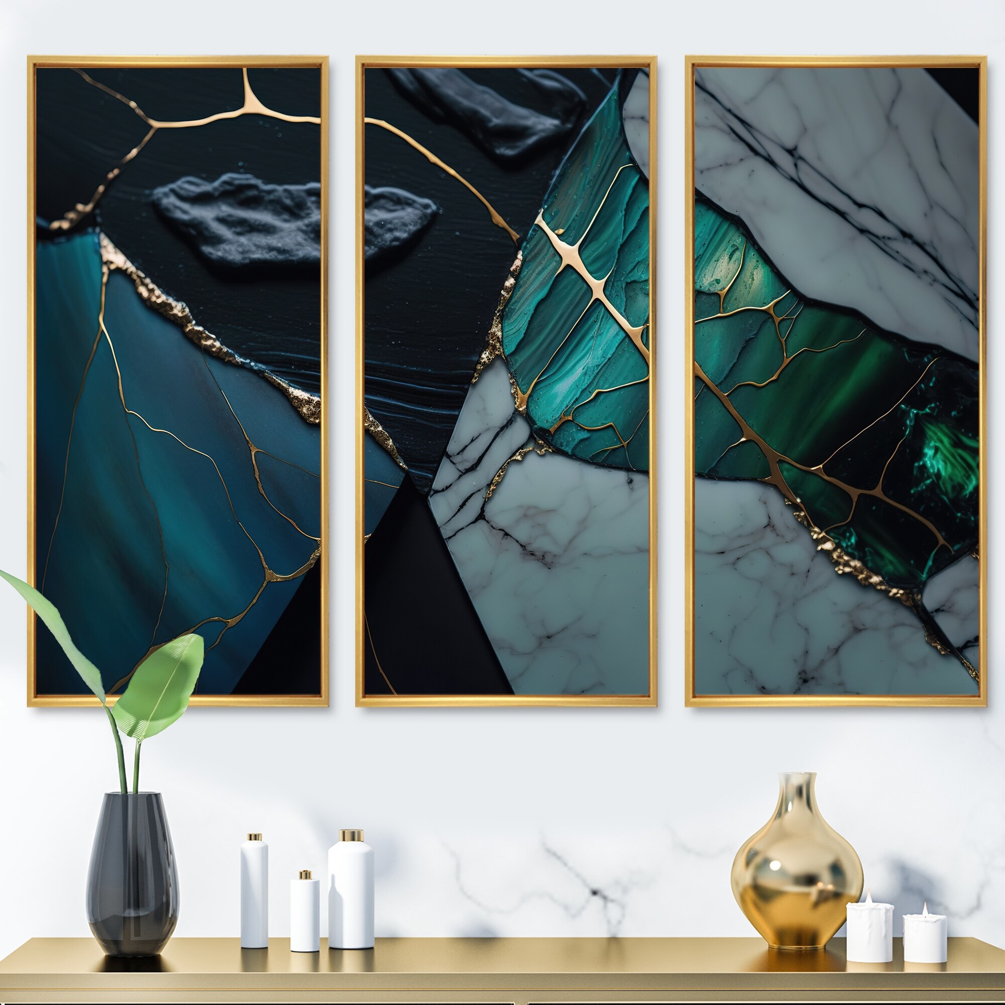 Designart "Abstract Geode Green IV" Abstract Marble Framed Canvas Art Print - 3 Panels
