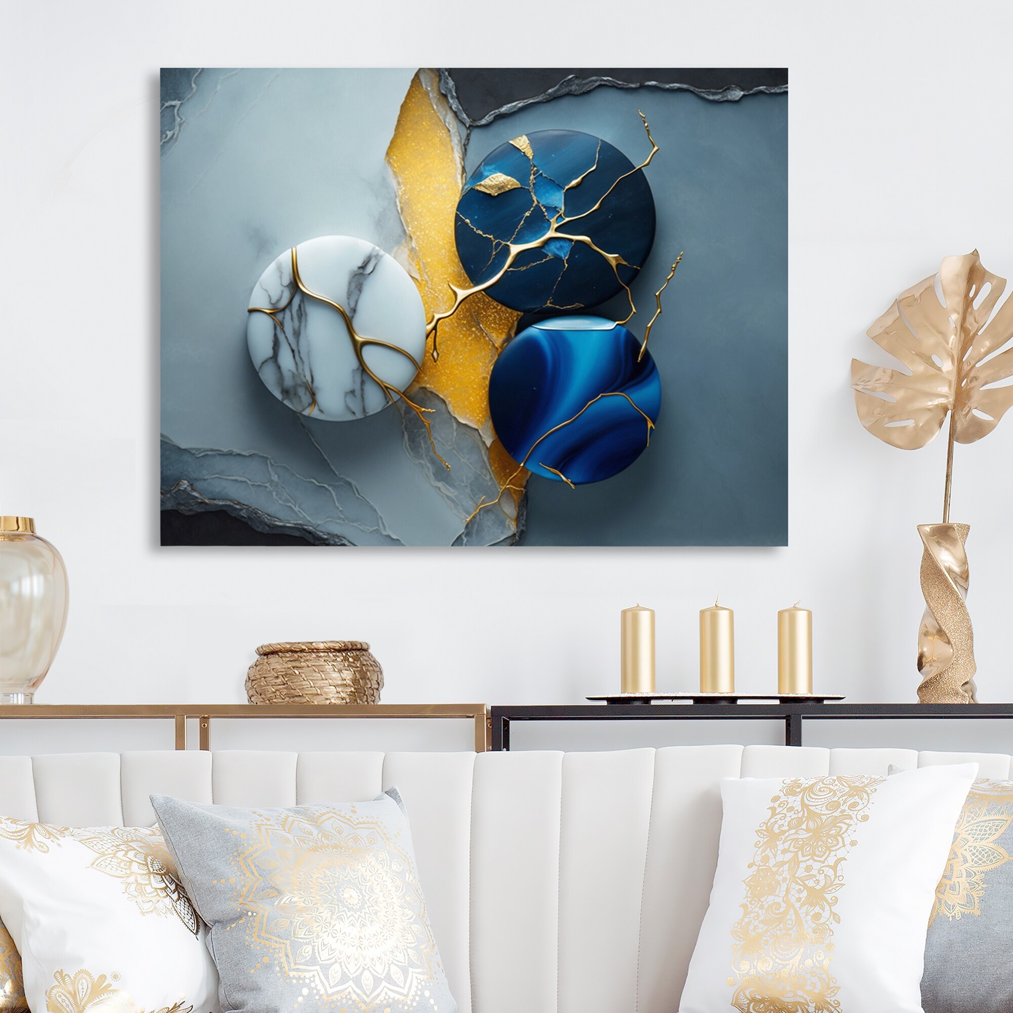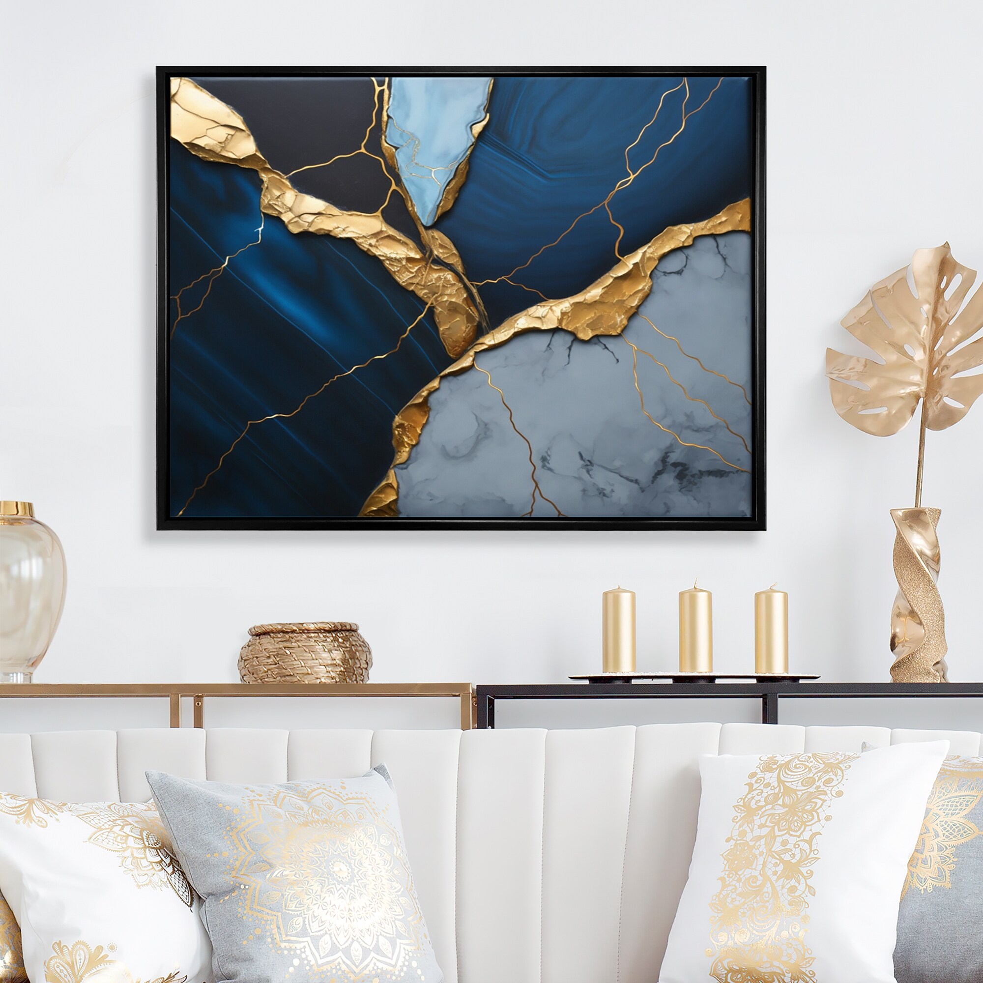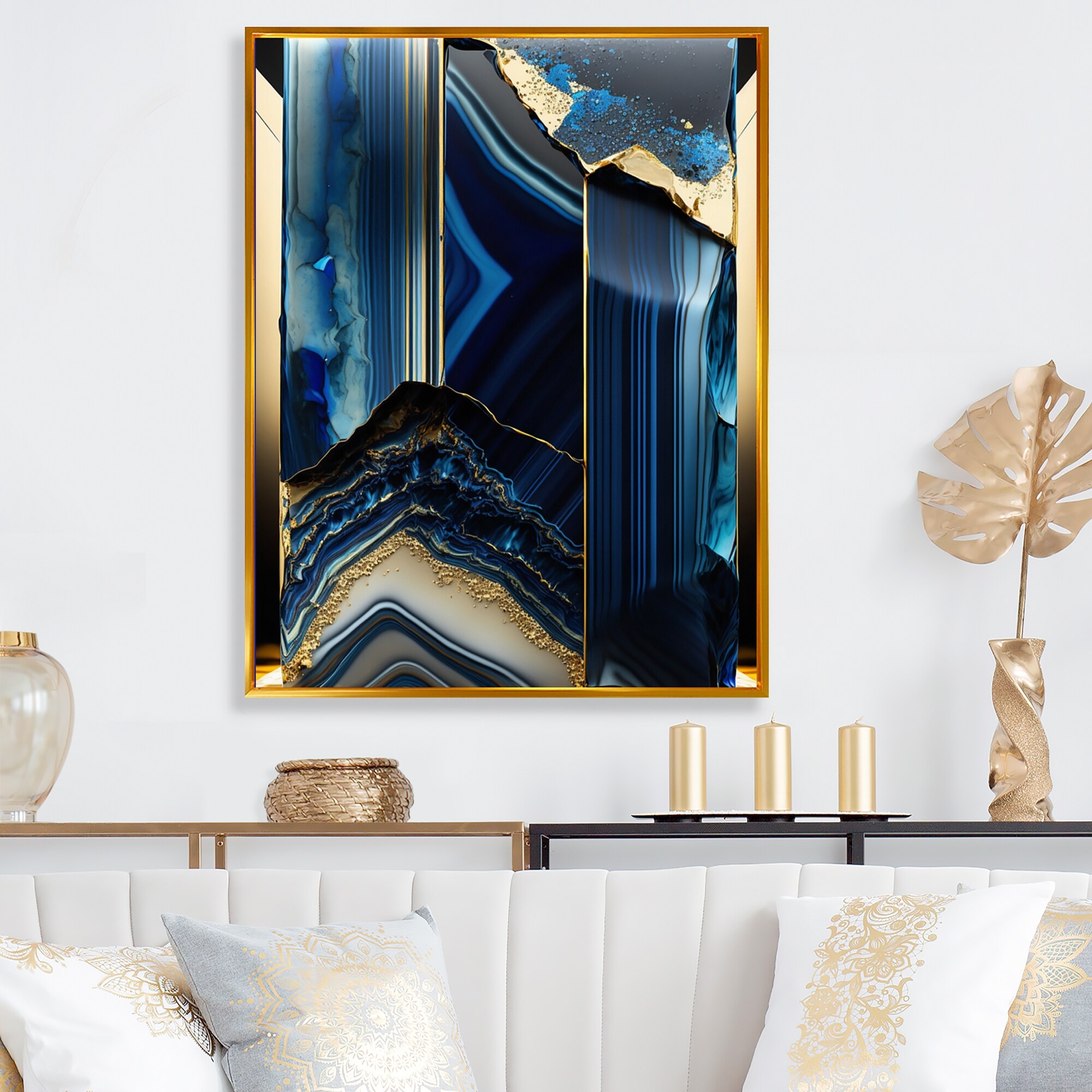 Designart "Abstract Geode Gold And Blue Marble II" Marble Abstract Framed Art Print