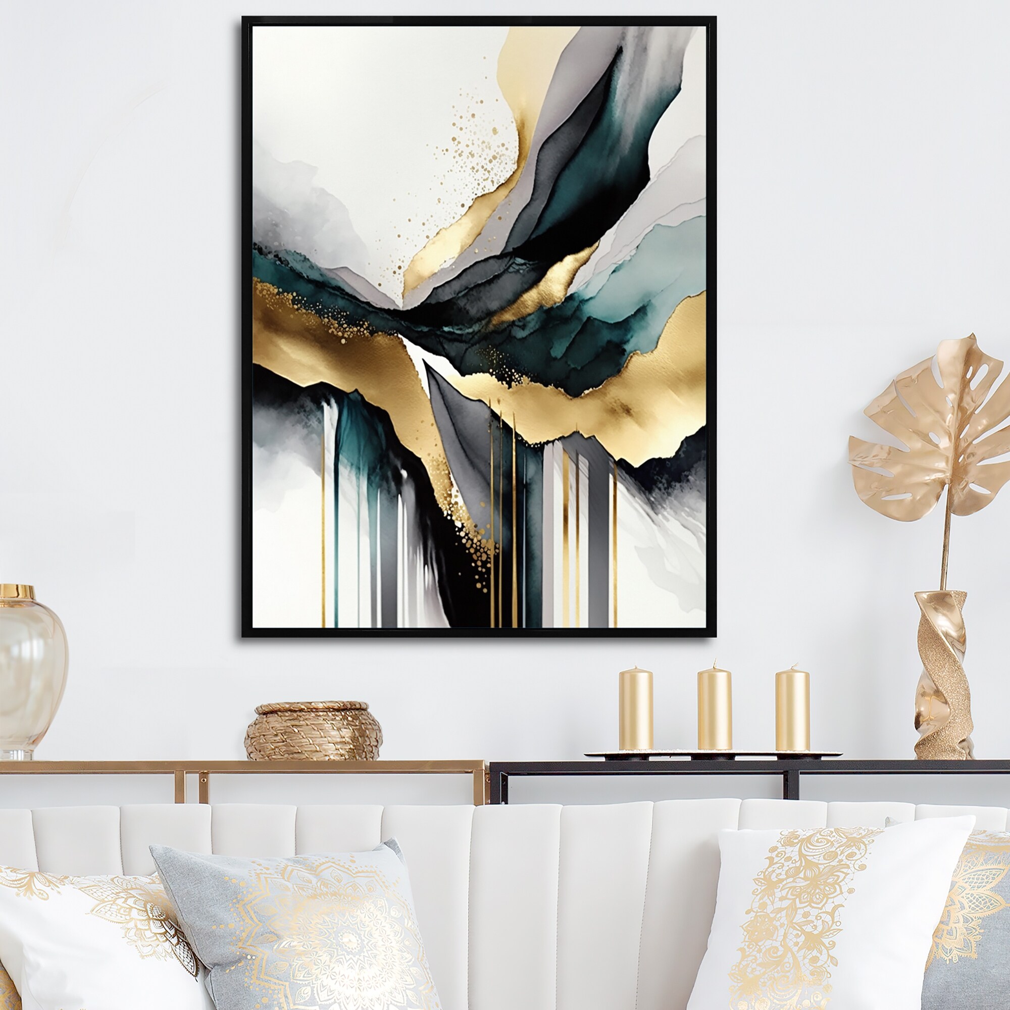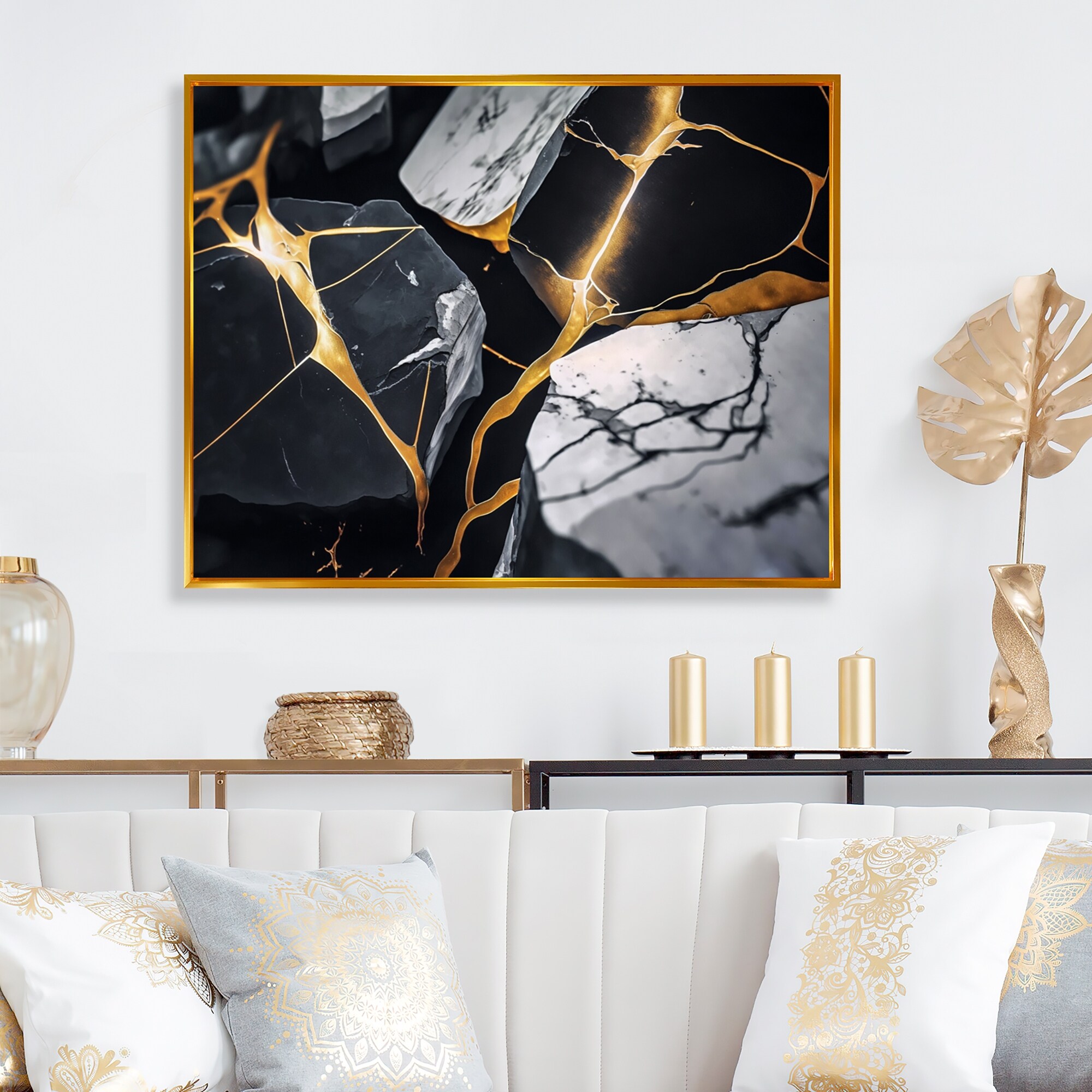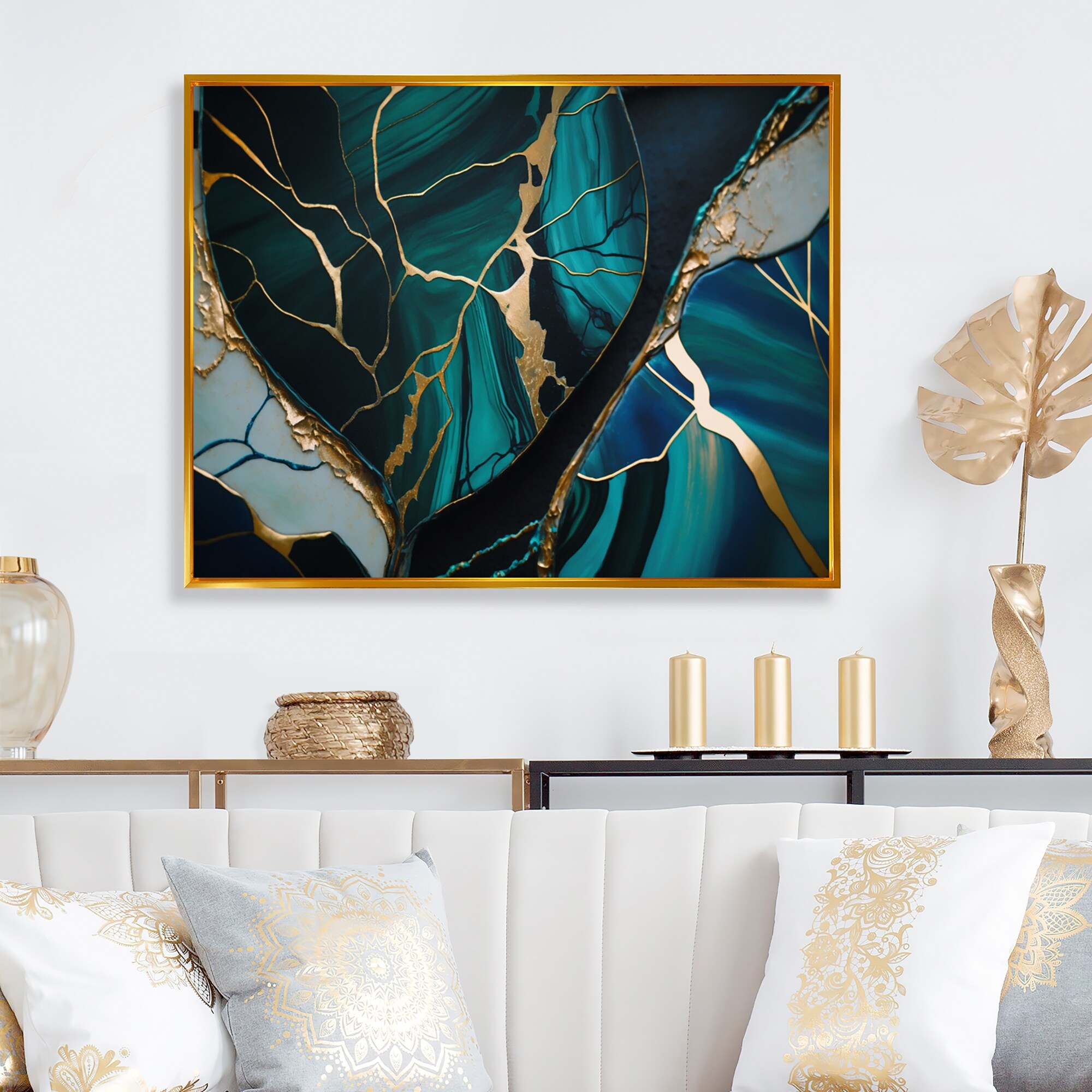 Designart "Abstract Geode Gold Marble II" Marble Abstract Framed Canvas Art Print
