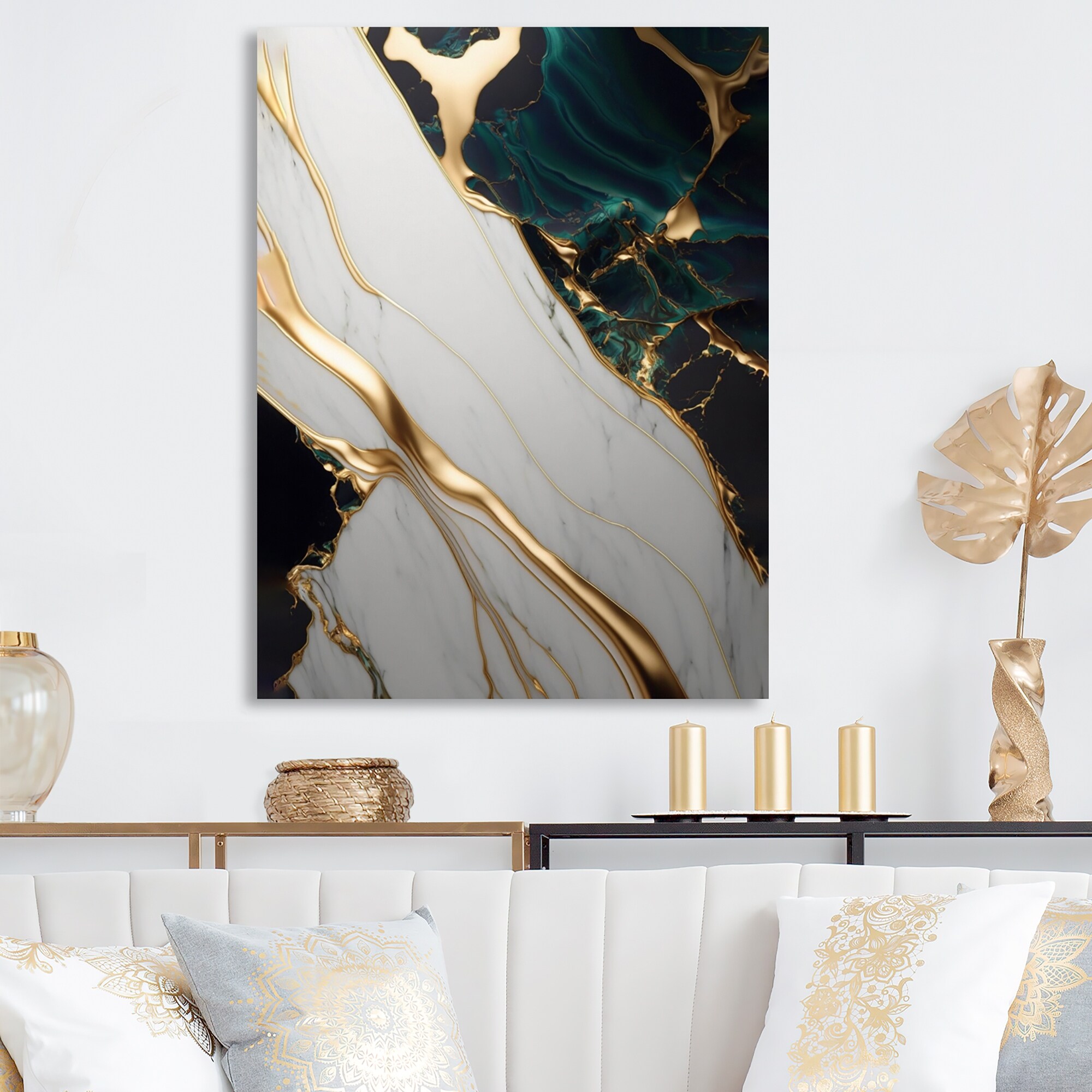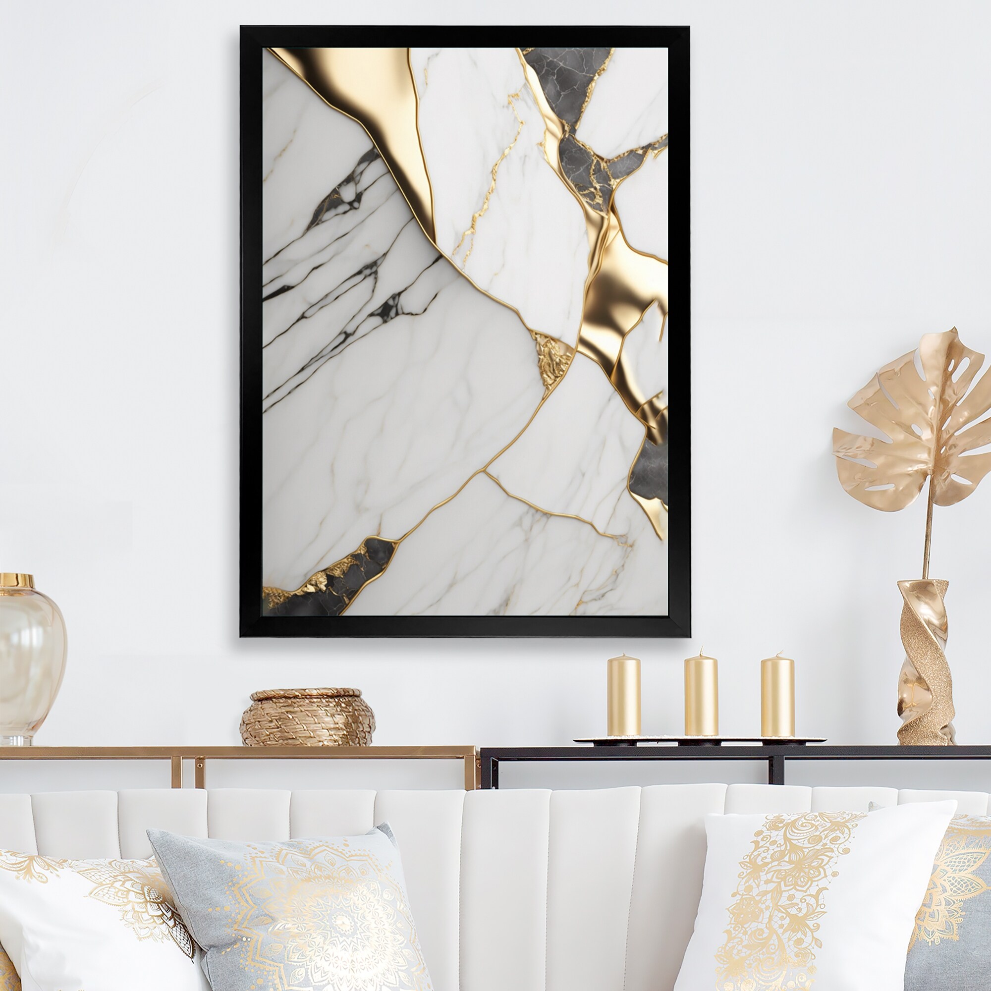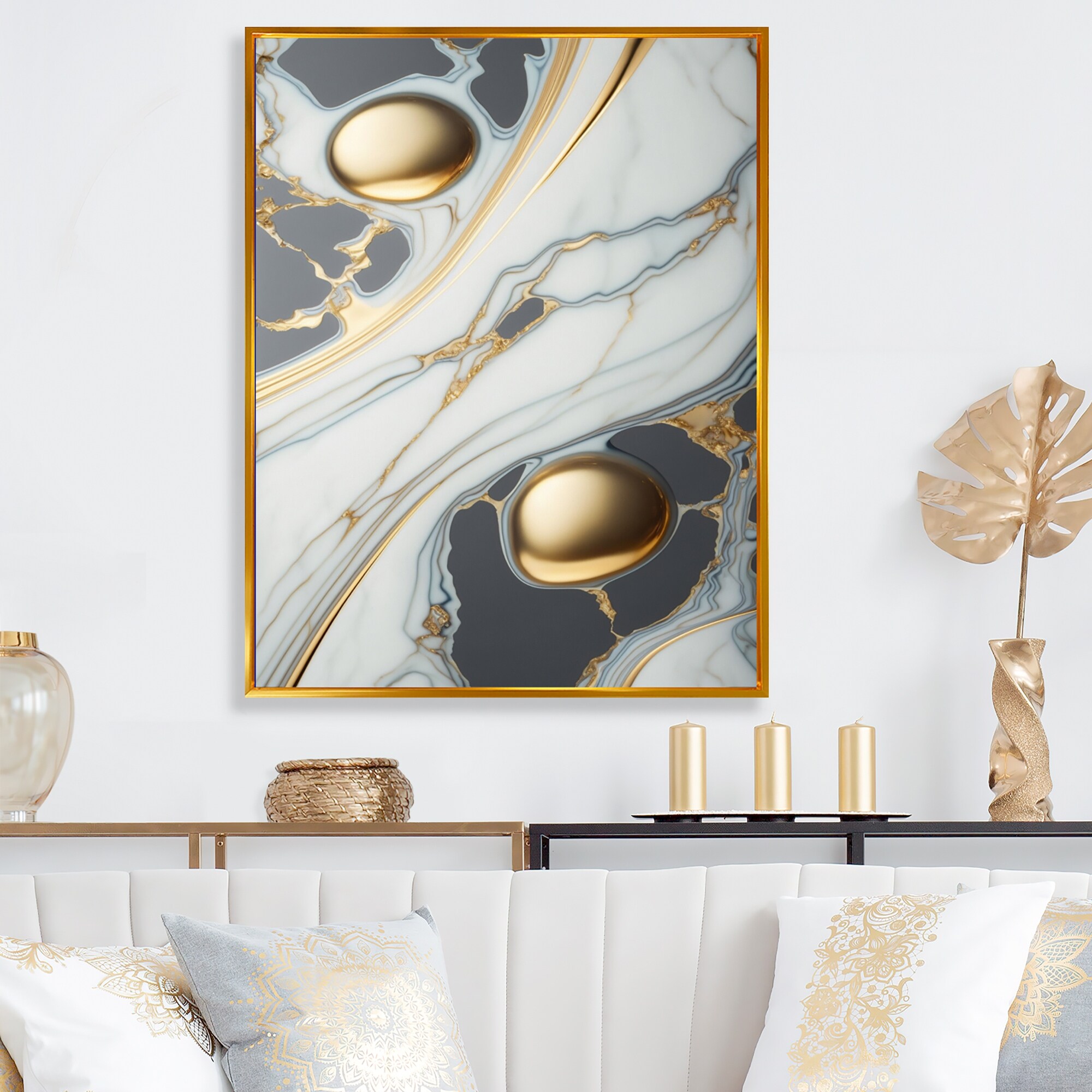 Designart "Abstract Geode Gold And White Marble IV" Marble Abstract Framed Canvas Art Print