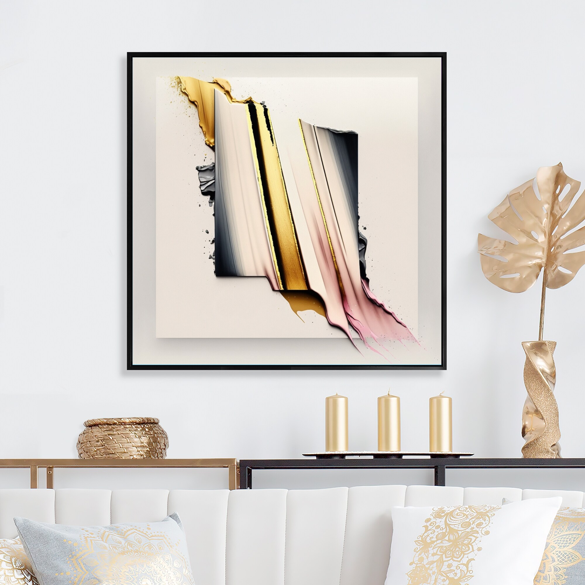 Designart "Abstract Geode Marble White And Gold IV" Marble Abstract Framed Canvas Art Print